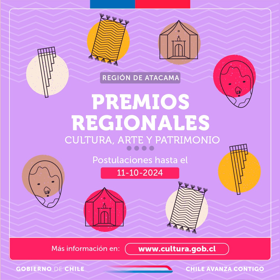 La Secretaría Regional Ministerial de las Culturas, las Artes y el Patrimonio de Atacama, anuncia la apertura de las postulaciones a los Premios Regionales de Cultura, Arte y Patrimonio 2024, que este año reconocerán a artistas emergentes y de trayectoria de cada una de las comunas de la región.