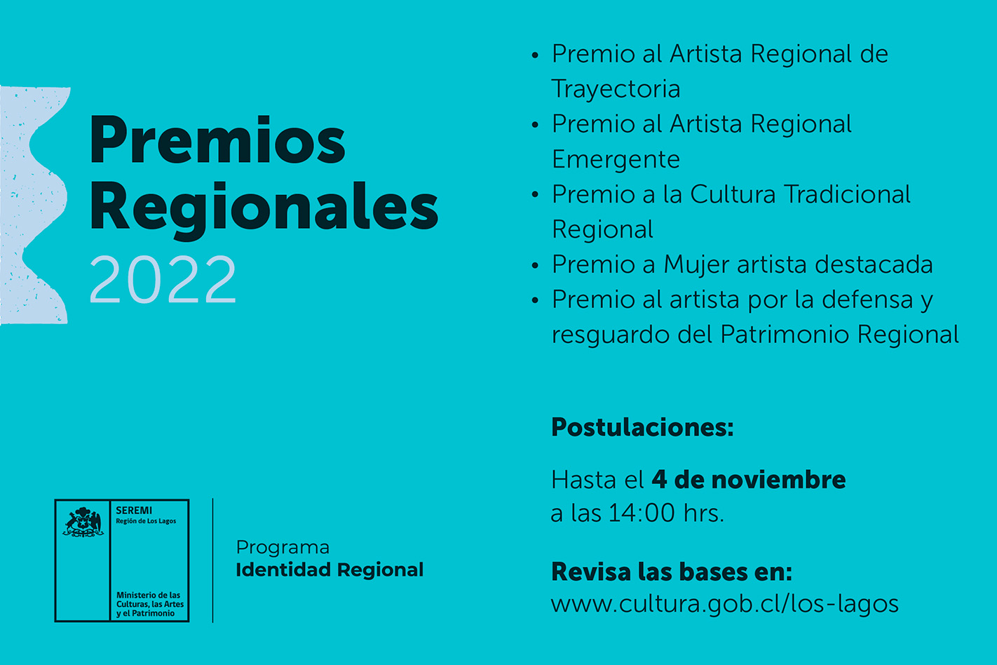 “Los premios regionales de arte y cultura son un estímulo para gestores y artistas de la región que han realizado un aporte importante de rescate, salvaguarda y de trabajo de recopilación artística de todo aquello que es característico de los diversos territorios de la región de Los Lagos. Es por eso que invitamos a las organizaciones culturales a presentar a sus artistas para que puedan postular este premio 202 y entre todos y todas tomemos la decisión de quién o quiénes serán los/as merecedores/as de los premios de arte y cultura”, señaló la seremi de cultura de la región de Los Lagos, Cristina Añasco Hinostroza.