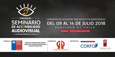 El Primer Seminario de Accesibilidad Audiovisual, que se adjudicó el Fondo de Fomento Audiovisual 2018, se llevará a cabo entre el 09 y 14 de Julio del 2018. Esta actividad tiene el fin de entregar los conocimientos necesarios para aplicar herramientas inclusivas en piezas audiovisuales, tal como lo son la audiodescripción, para personas en situación de discapacidad visual, y subtítulos descriptivos, para personas con discapacidad auditiva.