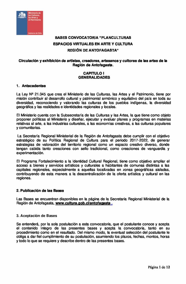 BASES DE CONVOCATORIA PLAN CULTURAS 2020