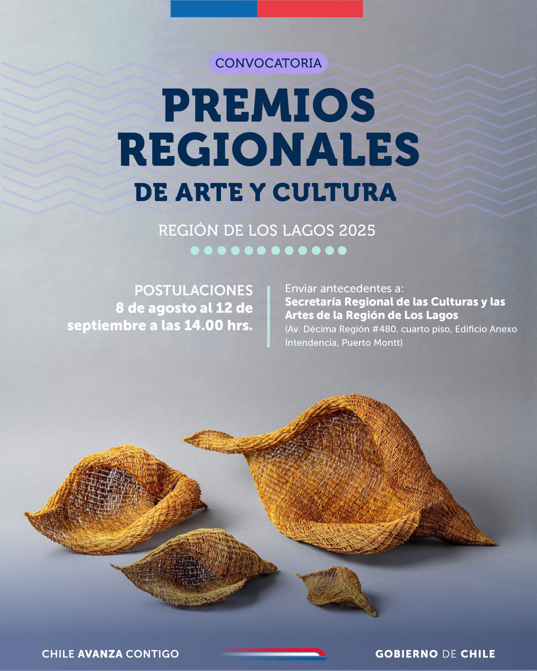 Las postulaciones estarán abiertas desde el 8 de agosto hasta el 12 de septiembre de 2025, y deberán entregarse presencialmente en la SEREMI de las Culturas, Puerto Montt. Los premios incluyen montos que van desde $1.500.000 a $2.000.000 millones de pesos más una estatuilla, creada por la artista, Raquel Aguilar Colivoro, Sello de Excelencia a la Artesanía 2020.