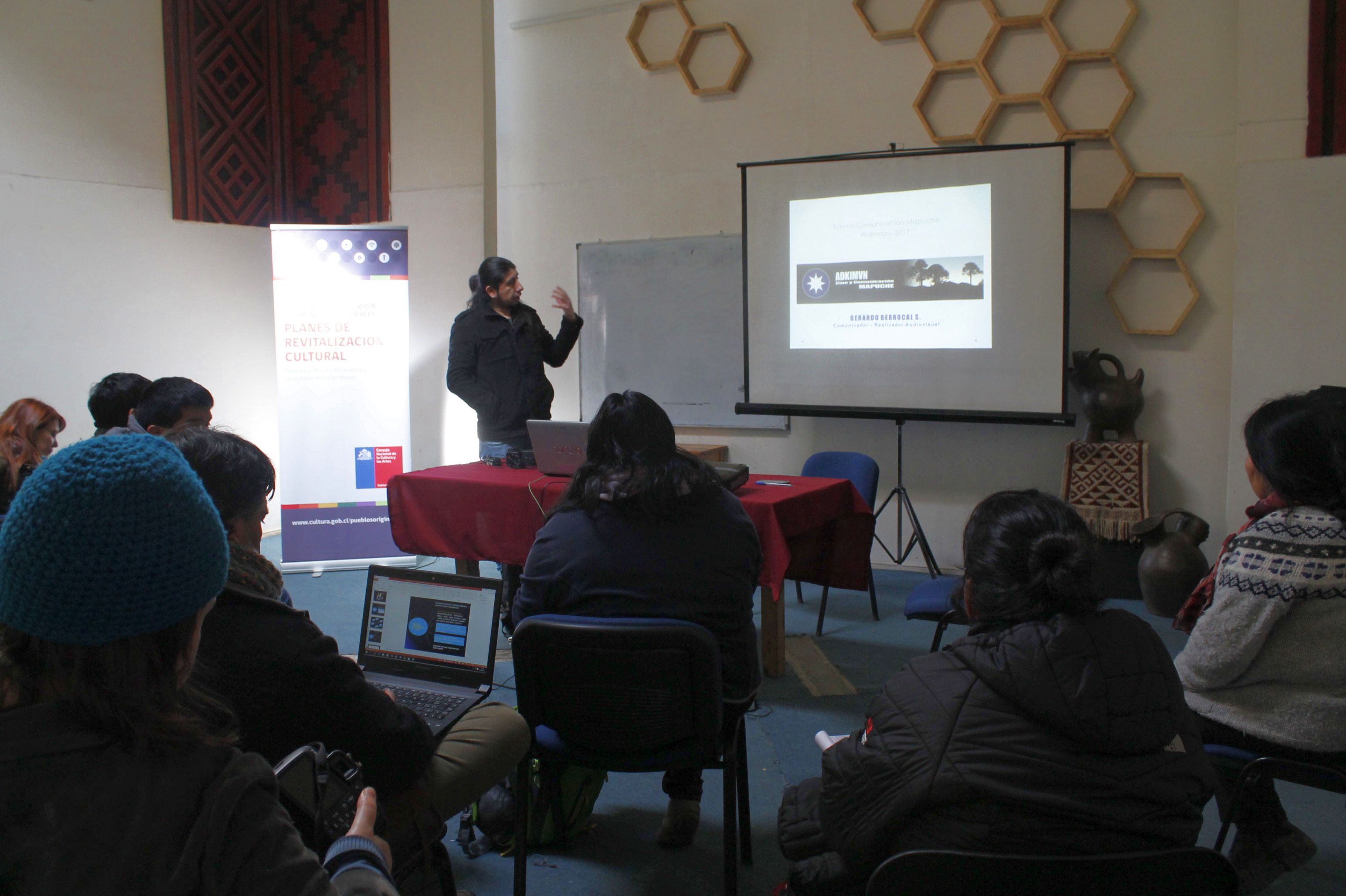 Este taller es financiado por el Programa de Fomento y Difusión de las Artes y las Culturas de los Pueblos Indígenas del CNCA. En la ocasión, Lorenna Saldías, directora regional del Consejo de la Cultura y las Artes, señaló: “Hemos venido trabajando hace un tiempo ya, desde la Consulta previa para la creación del Ministerio de las Culturas, las Artes y el Patrimonio, en lograr un nuevo tipo de relación entre el Estado y los pueblos originarios, mirada desde la cultura. Así hemos impulsado un proceso de revitalización cultural basado en los derechos indígenas establecidos en el convenio 169, y cuyo programa de trabajo ha sido plenamente decidido por las organizaciones, siendo la participación un elemento que está presente permanentemente en cada una de las etapas del proceso”.