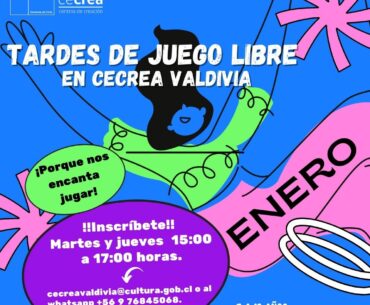 Con dos actividades estivales, Cecrea invita a conocer sus espacios y a usarlos libremente, como una instancia adicional a la programación que ofrecerá en enero. Se trata de “Tardes de juego libre” y “Pide tu espacio en Cecrea”, la primera dirigida a participar de entretenidas actividades los martes y jueves de 15 a 17 horas y la segunda pensada en facilitar los espacios del Centro para ensayar, leer, bailar, jugar cartas o usar internet, entre muchos otros. Ambas actividades están dirigidas a personas de 7 a 19 años.