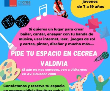 Llega el verano y las familias comienzan a planificar las vacaciones, pero también inician la búsqueda de actividades para pasar estos meses de receso escolar. El Centro de Creación de la Seremi de las Culturas llega en enero con una programación compuesta por seis alternativas, siempre apuntando a públicos de 7 a 19 años, totalmente gratuitas y en su mayoría en modalidad presencial en el edificio ubicado en el barrio estación, en avenida Ecuador 2000, en Valdivia.