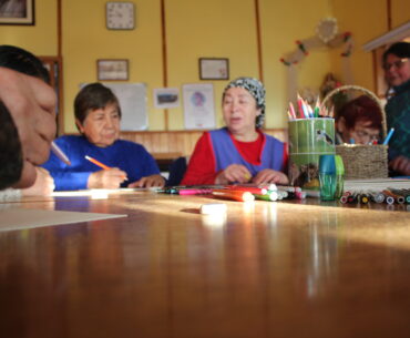 Alguna vez, el general francés Charles de Gaulle dijo que “la vejez es un naufragio”. La historia sugiere que Gabriela Mistral retrucó en una de sus cartas que “la vejez no es un naufragio, si alguien la acompaña”. Así lo ha sentido María Chiguay durante las cuatro jornadas del taller, donde no solo ha aprendido técnicas de retrato y autorretrato y a trabajar con telas, sino también ha participado de un creativo diálogo en comunidad con sus pares de Puerto Aysén: “Ha sido muy lindo, muy bonita experiencia, a pesar de que yo de arte sé bien poco, casi nada, pero estoy aprendiendo y es muy bonito, me encantó. Estamos haciéndolo porque uno nunca termina de aprender, es muy entretenido. Conversamos con las otras señoras y nos damos ideas unas con otras”.