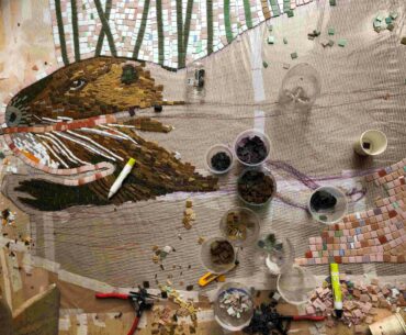 Este trabajo —que combina mosaico en vidrio y cerámica ilustrada— tomó forma en varias etapas, varias de las cuales integraron a 20 estudiantes de 7° básico a 4° medio del Colegio Altas Cumbres, todos integrantes del grupo de forjadores ambientales de dicho espacio educativo. Durante el año se realizaron con ellos tres talleres para abordar distintos aspectos especialmente diseñados para que niñas, niños y jóvenes aprendieran desde el propio lago, sus humedales y su memoria viva, aportando observaciones, dibujos y notas que luego se integraron al diseño final.