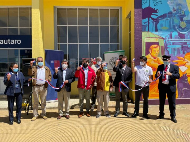 El seremi de las Culturas, las Artes y el Patrimonio, Enzo Cortesi, el director del Servicio Nacional del Patrimonio Cultural, Roberto Concha y el presidente del Directorio de EFE SUR, Víctor Lobos, junto a otras autoridades locales, inauguraron dos murales, uno en las Estación de Ferrocarriles de Temuco, que se refiere a la historia del ferrocarril, y el otro en la de Lautaro, que destaca la cultura mapuche.