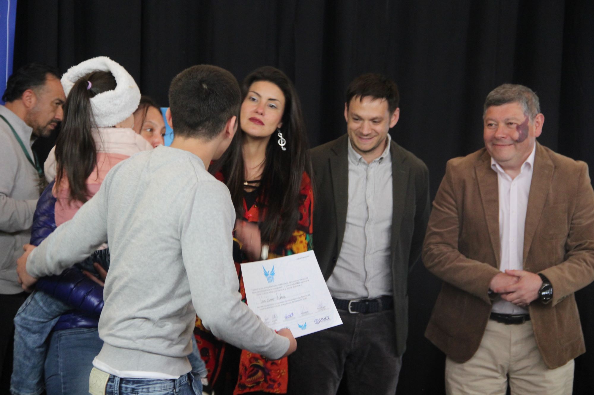 Esta nueva experiencia llegó a un total de cuatro jóvenes: uno en internación provisoria y tres en régimen cerrado. Detrás de dicho proceso brilló una vez más el aporte del destacado músico nacional, productor y educador biopsicosocial Andrés Godoy junto a su experimentado equipo. En Ceremonia interna en el Centro IP – IRC Punta Arenas, este viernes 14 de marzo se desarrolló la emotiva ceremonia de cierre y certificación de esta nueva versión de Liberando Talento. A ella asistieron sus participantes, familiares y autoridades encabezadas por el Delegado Presidencia Regional (s), Andro Mimica; la Seremi de las Culturas, las Artes y el Patrimonio, Carolina Herrera, junto a su par de Justicia y Derechos Humanos, Michelle Peutat; el Director Regional de Gendarmería (s) en Magallanes, teniente coronel, Edgardo Pérez, y el Director Regional del Servicio Nacional de Reinserción Social Juvenil, César Montiel.