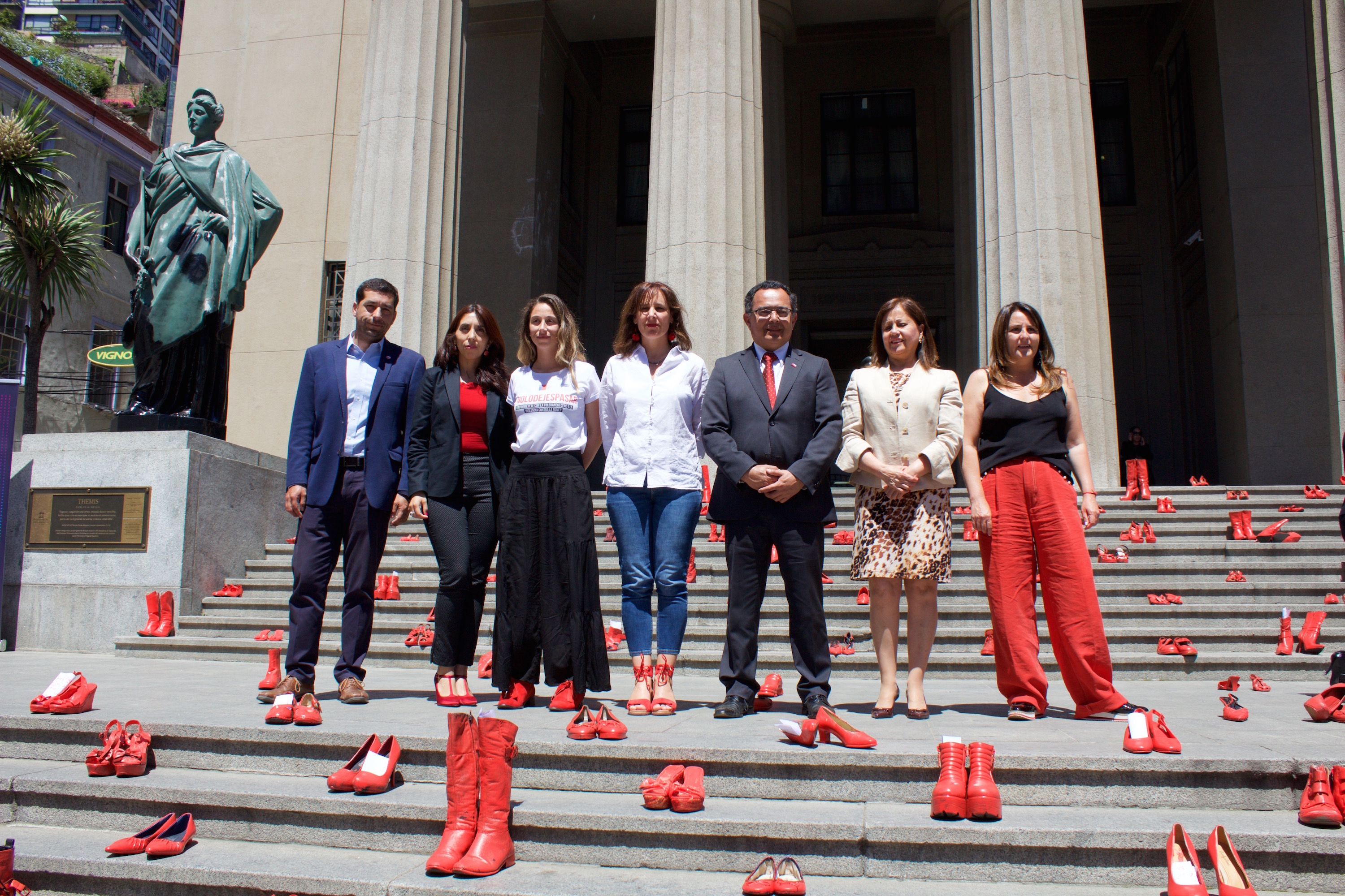 Zapatos de mujer, de diversos tamaños y formas, con mensajes contra la violencia de género aparecieron este miércoles en las escalinatas de la Corte de Apelaciones de Valparaíso, como parte de la intervención pública Zapatos Rojos, de la artista mexicana Elina Chauvet, que busca reflexionar sobre las cientos de mujeres que han muerto a manos de sus parejas en nuestro país.