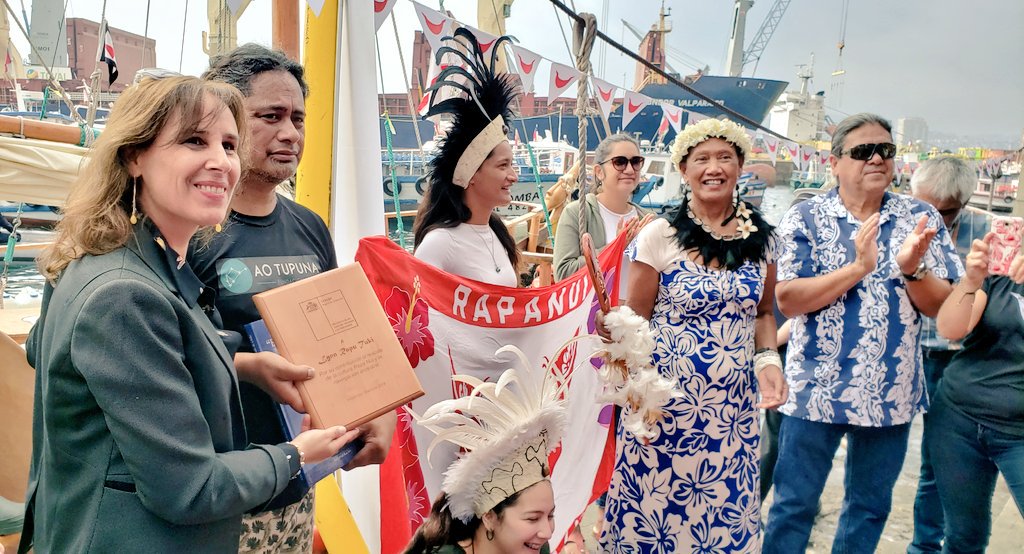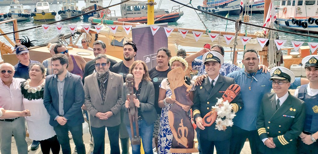 La seremi de las Culturas, Constance Harvey, manifestó que “ahora comienza una gran travesía que inicia con un acto de Umu Hatu en donde le entregamos ofrendas y víveres que ellos necesitan para este viaje que creemos que se puede demorar unos 20 días, pero además muy agradecidos porque hemos tenido mucha colaboración de la Armada de Chile, del Cuerpo de Voluntarios del Bote Salvavidas, y actores que han estado presentes esto no hubiera podido ser, y estas iniciativas así mancomunadas con gente que se cohesiona en torno a un rescate ancestral es lo más importante para nosotros”.