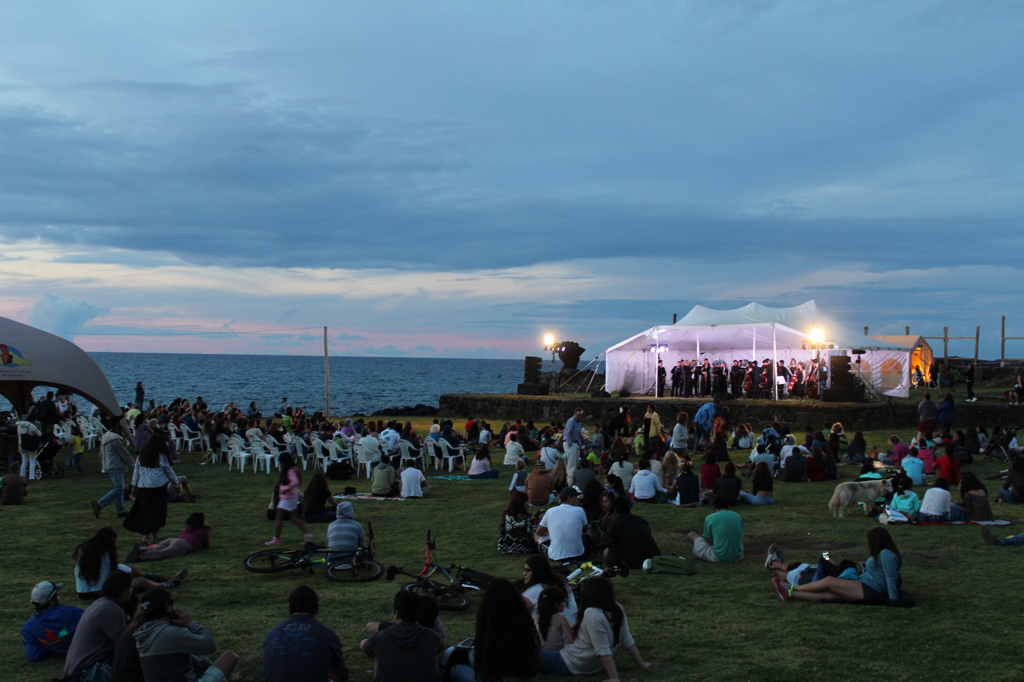 Aproximadamente 700 personas asistieron al atardecer para disfrutar de obras de Mozart, Wiren y Tchaikovsky interpretadas por los jóvenes músicos. La nota alta de la tarde la puso el joven estudiante Irirangi Hey Medina, alumno de violín de la Escuela de Música y de las Artes Toki, quien interpretó un solo de Vivaldi junto a la Orquesta. Previo al concierto, alumnas de la Escuela bailaron música Rapa Nui.