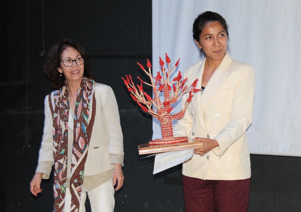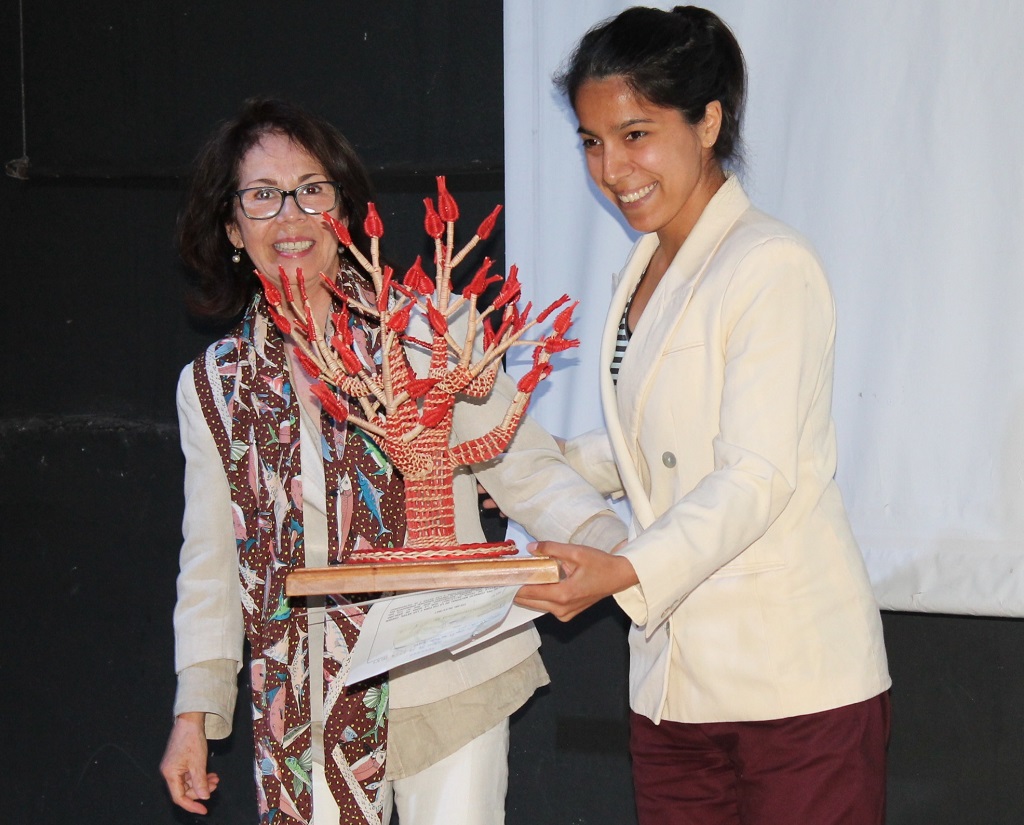 Katherine Estrada recibió el premio en la categoría Artista/Cultor Regional Emergente, destinada a relevar a quienes hayan difundido y/o divulgado sus obras destacadas, creadas, y/o interpretadas, entre los años 2016-2017, en cualquiera de las disciplinas artísticas que forman parte de los programas del CNCA.