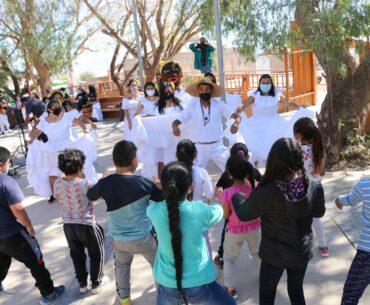 El primero de los hitos se llevó a cabo con estudiantes de la Escuela Emperatriz Sepúlveda en Inca de Oro, oportunidad en la que alumnos y alumnas del establecimiento educacional compartieron en talleres y presentaciones artísticas con los músicos regionales Lucas Ledezma y Alfonso Silva, con quienes conocieron y experimentaron con el instrumento Track Cajón Peruano, y con la agrupación Barrio del Tambor, con quienes participaron en talleres de danza y mediaciones sobre el Tumbe o “Tumba Carnaval”, aprendiendo todo sobre los orígenes y motivos de esta danza Afro Descendiente.