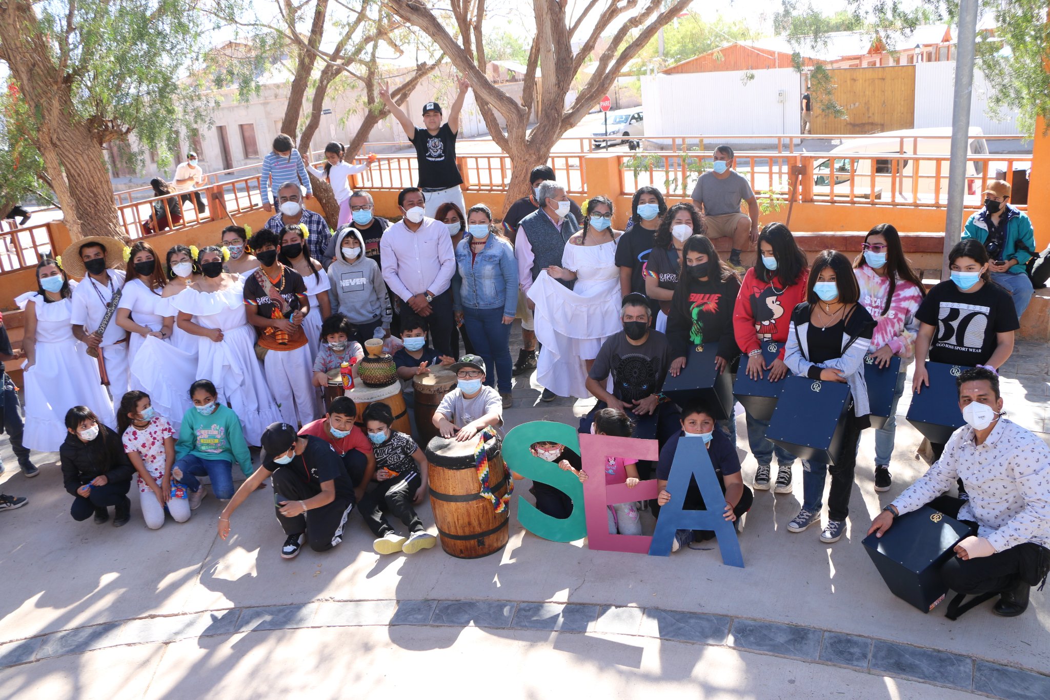 El primero de los hitos se llevó a cabo con estudiantes de la Escuela Emperatriz Sepúlveda en Inca de Oro, oportunidad en la que alumnos y alumnas del establecimiento educacional compartieron en talleres y presentaciones artísticas con los músicos regionales Lucas Ledezma y Alfonso Silva, con quienes conocieron y experimentaron con el instrumento Track Cajón Peruano, y con la agrupación Barrio del Tambor, con quienes participaron en talleres de danza y mediaciones sobre el Tumbe o “Tumba Carnaval”, aprendiendo todo sobre los orígenes y motivos de esta danza Afro Descendiente.