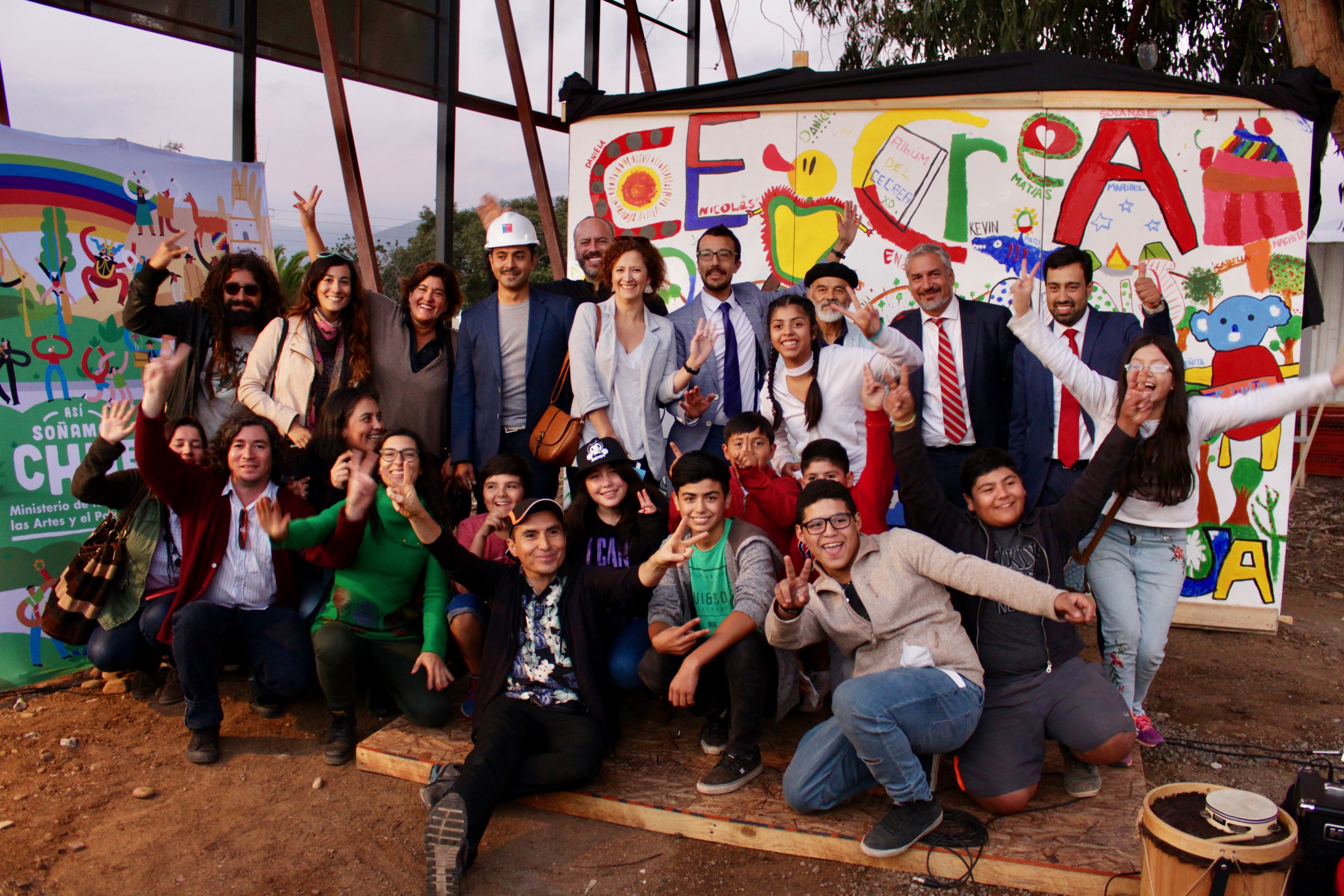 La ceremonia finalizó con la presentación de un gran mural confeccionado por niños, niñas y jóvenes de Cecrea, escenario que sirvió para plasmar en una foto oficial la instalación de la primera piedra.
