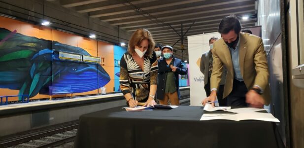 Con la presencia de la seremi de las Culturas, Constance Harvey; el gerente general de Metro Valparaíso, Jorge Gómez; y el director de la ONG Valparaíso en Colores, Horacio Silva, se firmó un convenio de colaboración orientado a fomentar la cultura en espacios públicos a través de la creación de 14 murales en distintas estaciones de la red ferroviaria.