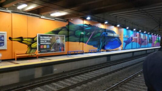 El proyecto ya se inició con dos murales que realizan los artistas Giova y Aztekas en la estación Viña del Mar; y este martes, las autoridades de Metro Valparaíso y la Seremi de las Culturas concurrieron a firmar el convenio de colaboración en estación Miramar, en cuyo andén trabaja el artista Daniel Marceli en la primera obra subterránea, inspirándose en un mito mapuche lafquenche para estampar en los muros a cuatro ballenas en tamaño real.