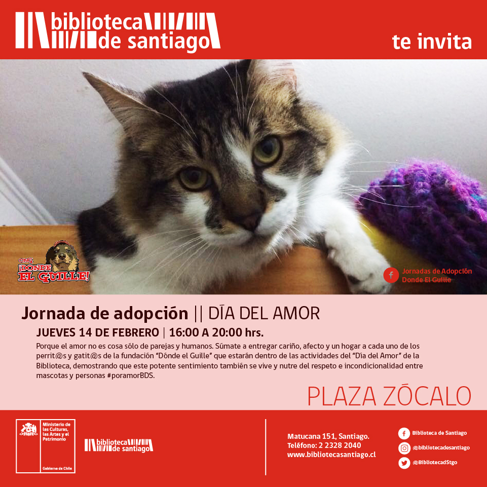 Para el Día “D” del amor y desamor, esta institución dependiente del Servicio Nacional del Patrimonio Cultural contará con una jornada de adopción de mascotas (a cargo de la fundación “Dónde el Guille”), para que los más fieles y caprichosos perros y gatos lleguen a entregar felicidad y amor a diferentes hogares.