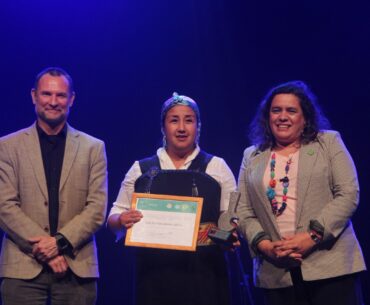 “Mari mari kompuche, soy textilera mapuche de la comuna de Leftraru. Este reconocimiento es muy importante para mí, me insta a seguir colaborando, participando y enseñando mi cultura, la cultura mapuche, a las nuevas generaciones para que puedan conocerla y valorarla. La cultura mapuche en el arte y en lo textil es muy importante y rica de conocimientos”, dijo Nelly Calbulao que obtuvo el premio a Mujer Destacada.