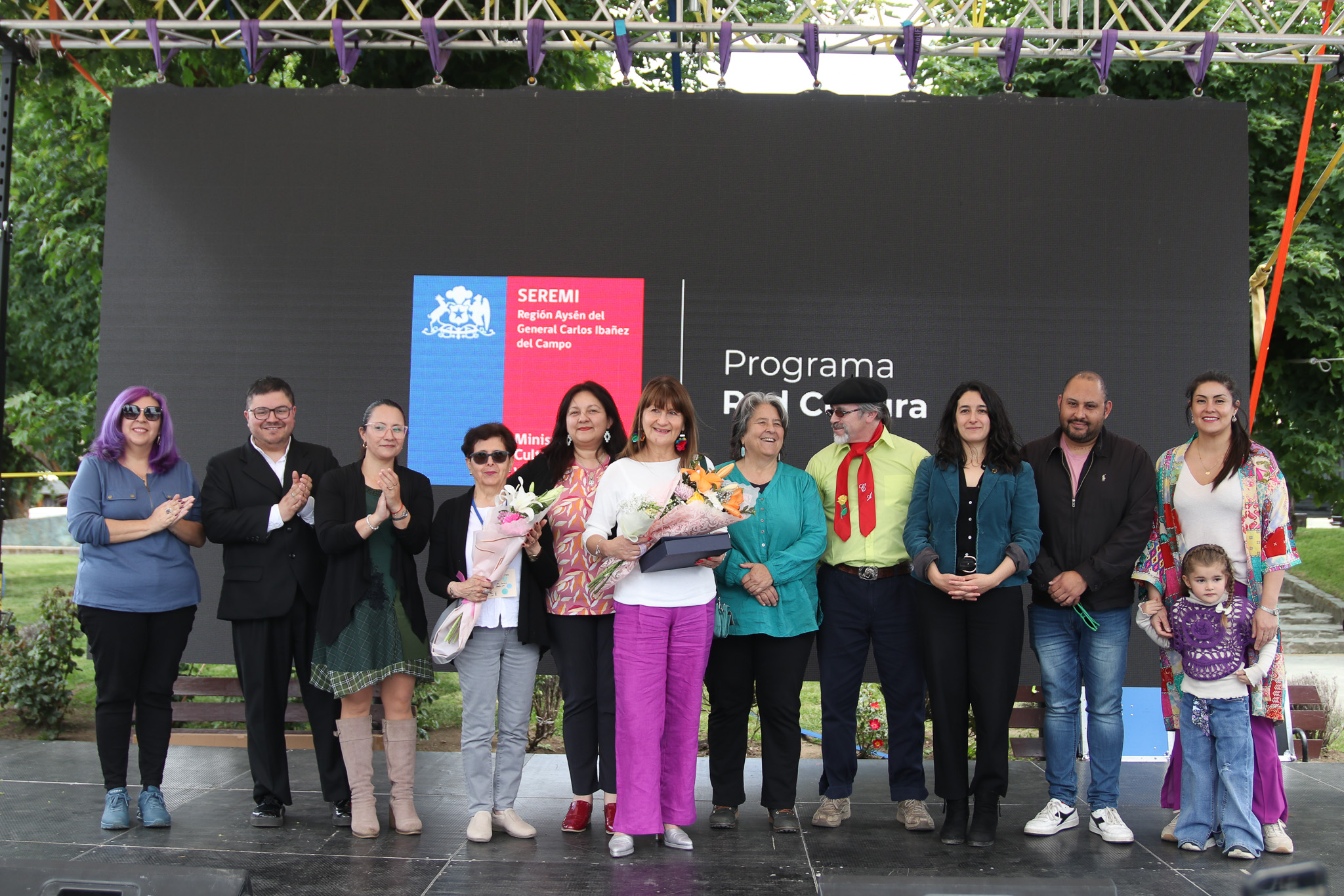 Además de los premios, se reconoció el trabajo de cuatro trabajadores del arte y la cultura de Aysén: la actriz Silvia Martínez, quien ha recorrido las comunas del territorio con su personaje la bruja Maruja fomentando la lectura; el cultor y músico oriundo de Balmaceda, Cecilio Aguilar, por su rescate permanente del arte tradicional; la escritora y artesana Rosa Tita Gómez, por su trabajo integral desde las comunidades; y, póstumamente, al fotógrafo cochranino Fabian España, fallecido a mediados de este año, y cuya obra recoge el rostro más profundo de la Patagonia.