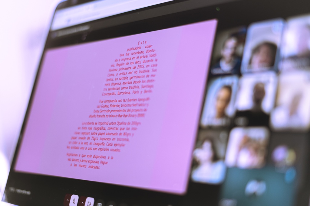 El libro recopila obras y procesos de Valentina Inostroza entre 2017 y 2024, reuniendo múltiples voces que reflexionan sobre arte, activismo y colectividad. El proyecto es financiado por el Fondo Nacional de Desarrollo Cultural y las Artes (FONDART Regional Los Ríos) 2025.