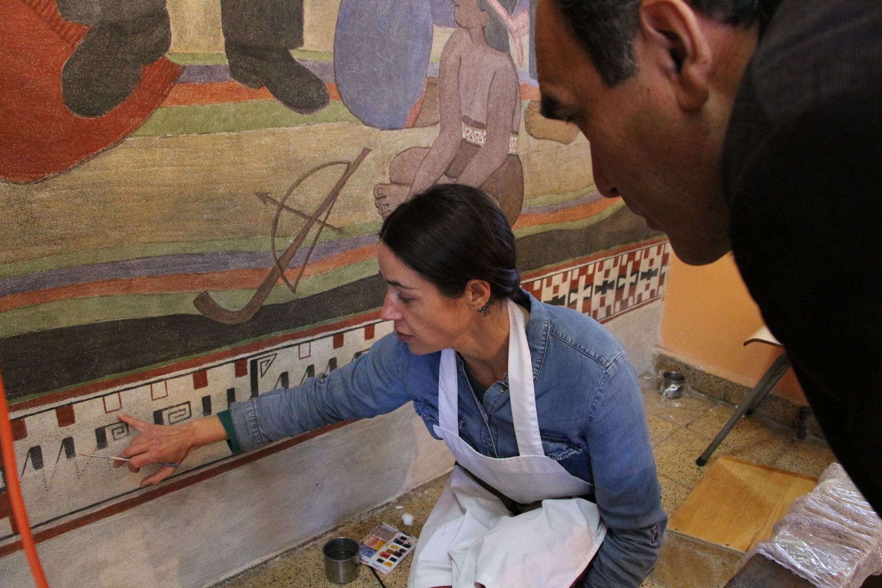 Otras de las profesionales del equipo, Séverine Neveu explicó que “el mural estaba en muy mal estado, debido a la humedad y al paso del tiempo, el fresco estaba a punto de caerse, hicimos un trabajo de consolidación a través de la aplicación cal y pigmentos y dimos los toques finales con acuarela. Además tuvimos que hacer un trabajo de investigación. Con la restauración pudimos también descubrir que en una parte del mural la autora dejó escrito el nombre de la obra y eso pudimos reconstruirlo también”.