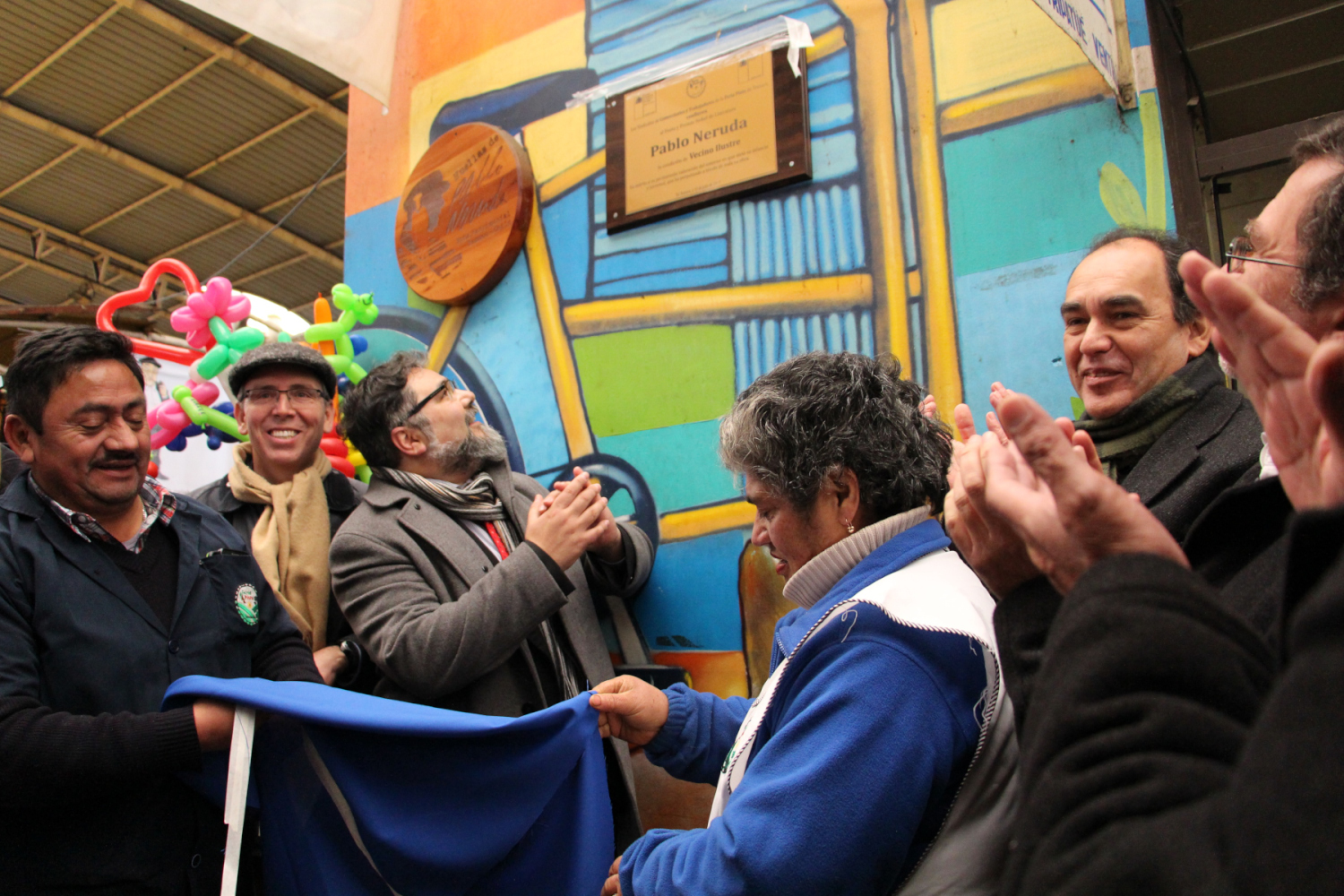 “Hoy día orgullosamente estamos haciéndole el reconocimiento al gran poeta Pablo Neruda. Estamos orgullosos de haber tenido un vecino como Pablo Neruda, un embajador en el extranjero para nuestro país. Este reconocimiento nace porque él fue un vecino y este sector fue una fuente de inspiración para sus poemas”, expresó Santiago Meliman, presidente del sindicato “Porvenir” del Bandejón 2 Feria Pinto, en representación de los cinco sindicatos que impulsaron esta iniciativa.