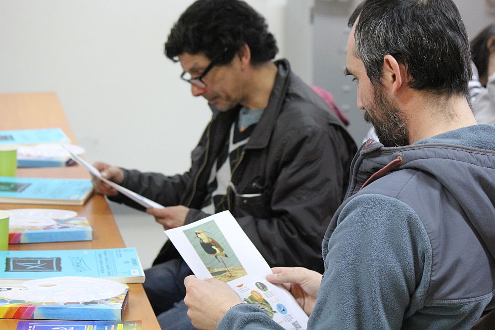 Este taller, aseguró la artista visual y guía del módulo pictórico, Leonor Harris, “nace para acercar el conocimiento de las aves a las personas. Y la excusa es la acuarela. Humberto, que es especialista en aves de la región, conversó acerca de ocho especies, cómo y dónde habitan, su comportamiento y características físicas, que luego fueron llevadas a la acuarela, antropomorfizándolas, o sea, disfrazándolas de humanos”.
