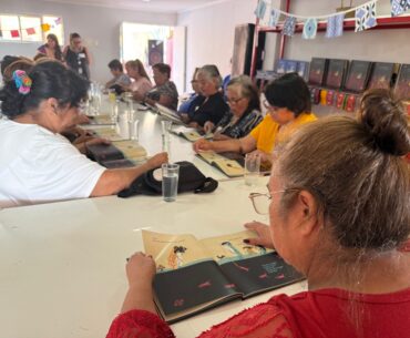 El taller, fue dirigido por Gabriela Sotomayor Ortiz, integrante de la Red de Mediadores de Lectura de la Seremi de las Culturas, las Artes y el Patrimonio, quien destacó que “la experiencia que vivimos el día de hoy acá en Tocopilla, fue hacer la lectura del libro La Costura de Isol, una previa lectura en voz alta, cada una tenía su libro, para después hacer una dinámica de compartir un círculo en Crea, donde tenían diversos materiales y donde ellas podían plasmar lo que significó esta lectura comunitaria, sus experiencias, terminando con muchos círculos en este trazo y un círculo comunitario grande que lo dejamos en un cuadro de regalo, para fortalecer la lectura en otros espacios que faltan acá en la comuna y región de Antofagasta”.