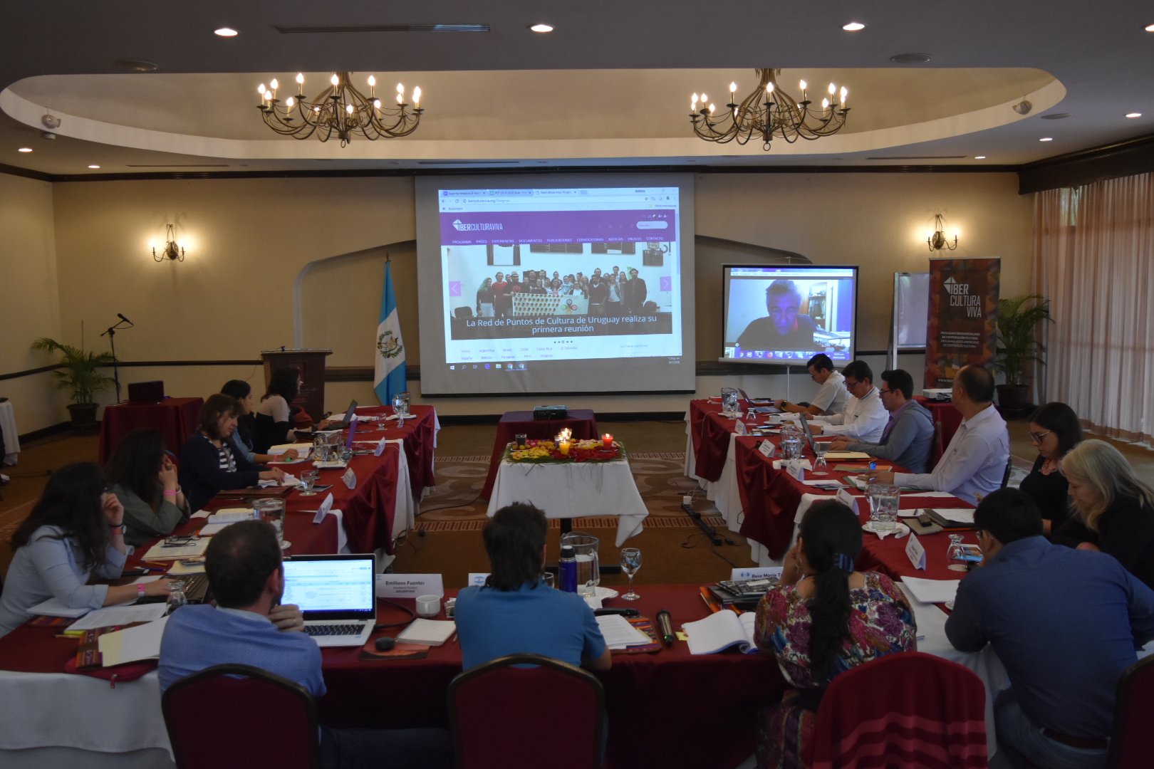 El Palacio Nacional de la Cultura, en la Ciudad de Guatemala, fue la sede del cuarto y último día de la 9ª Reunión del Consejo Intergubernamental de IberCultura Viva. Los representantes de los 11 países integrantes del programa dieron inicio a los debates previstos para las propuestas de sinergia con otros programas de cooperación iberoamericana y asistieron a las actividades de clausura.