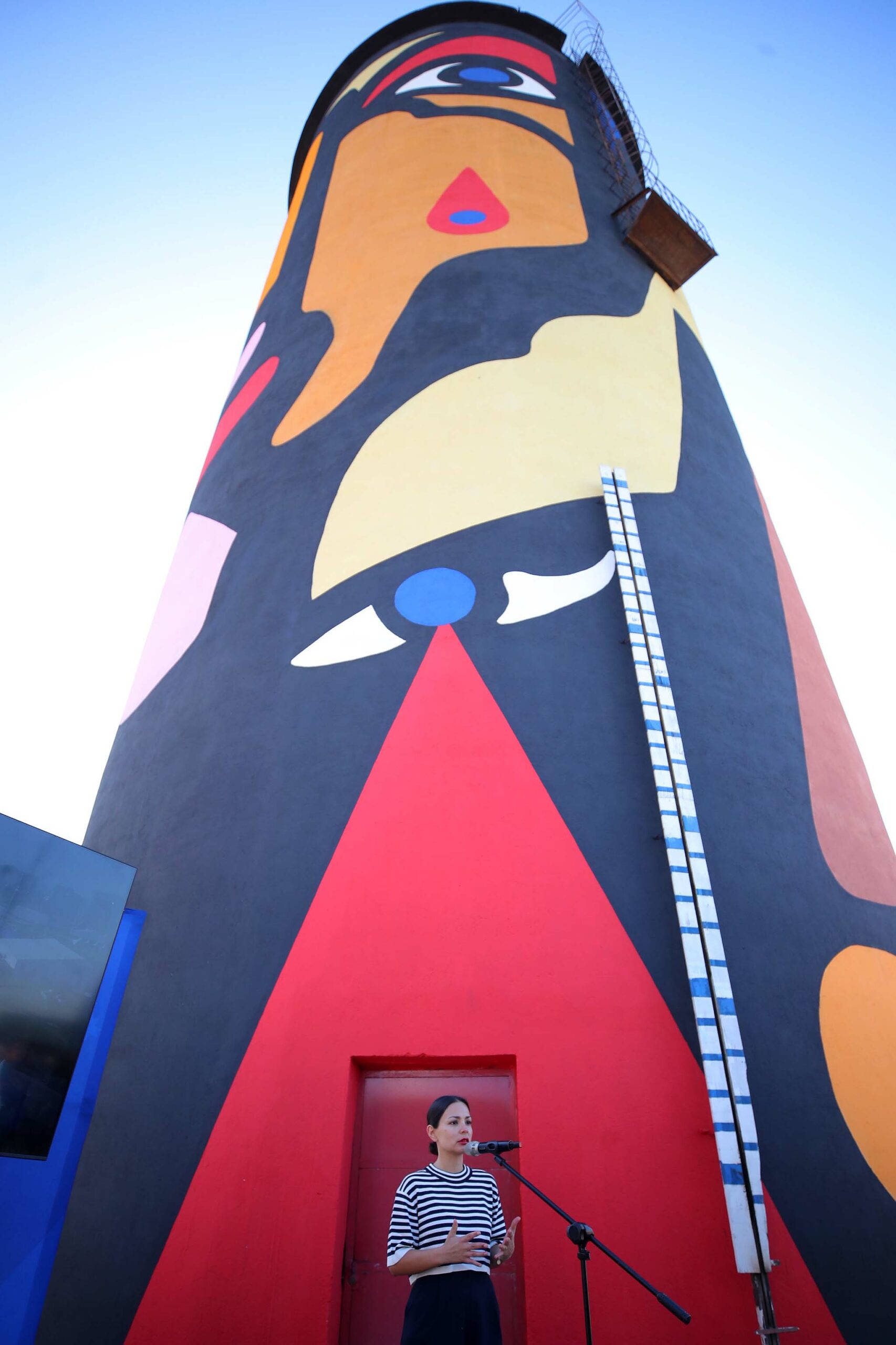 En tanto, el artista hizo hincapié en las historias que motivaron la pintura, comentando que “este silo es un referente geográfico histórico para los presos, ya que era lo primero que veían cuando los llevaban desde el coliseo al velódromo. Era un lugar de tránsito. Además, se trata de un faro, ya que es el punto más alto del estadio”.