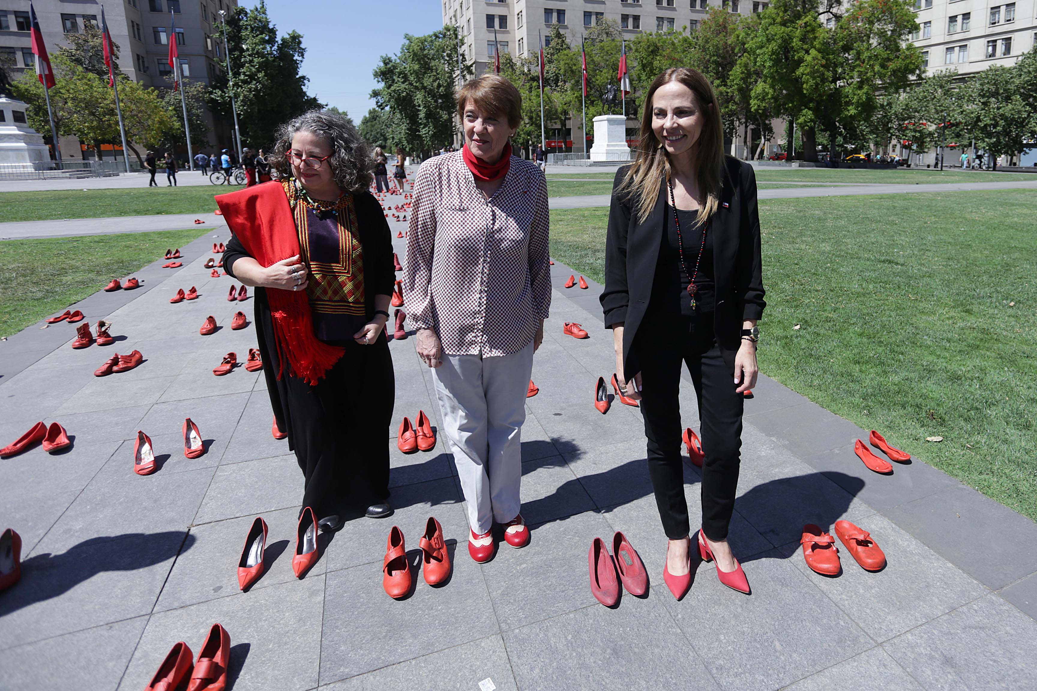 Por su parte la ministra de la Mujer y la Equidad de Género, Isabél Plá, aseguró que “todas las manifestaciones humanas son una oportunidad para decir tolerancia cero a la violencia contra las mujeres. En esta oportunidad, Elina Chauvet, ha llegado hasta Santiago con una intervención urbana que ha tenido mucho impacto en todo el mundo y para construir un sendero con los zapatos que alguna vez fueron o podrían haber sido ocupados por mujeres que han sido víctimas de violencia que ya no están con nosotros y poner sobre la mesa una situación que afecta a miles de chilenas que cargan de manera silenciosa y en mucha soledad”.