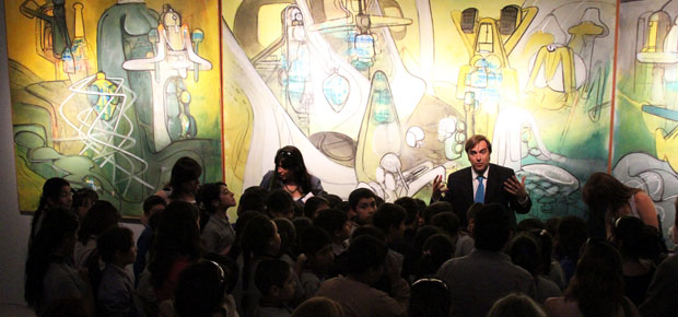 El Ministro de Cultura, Luciano Cruz-Coke, hizo las veces de guía en la exposición “Matta. Centenario 11-11-11”, del Centro Cultural Palacio La Moneda, ante cerca de 300 expectantes niños que resultaron ganadores del Concurso de pintura infantil Colorearte.