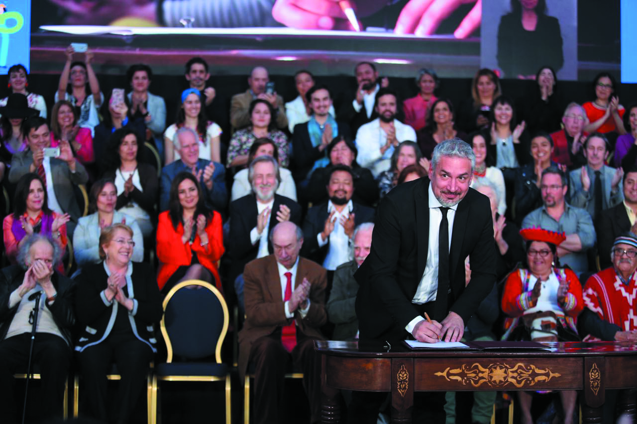 Destacados músicos, creadores, representantes del mundo circense y de asociaciones migrantes, artistas, autoridades de los pueblos originarios, escritores, audiovisualistas, actores, bailarines, folcloristas, diseñadores y arquitectos se dieron cita en el Patio de Los Naranjos del Palacio de La Moneda para ser partícipes de la firma del proyecto. Fue el trámite final para un proceso de larga data, que se concentra en acciones tomadas desde el retorno a la democracia. Su última etapa fue el ingreso de un proyecto presentado durante la administración anterior, que posteriormente fue despachado como Indicación Sustitutiva por el actual Gobierno de la Presidenta Michelle Bachelet, tras un proceso amplio de participación ciudadana que incluyó una Consulta Indígena en 2014-2015.