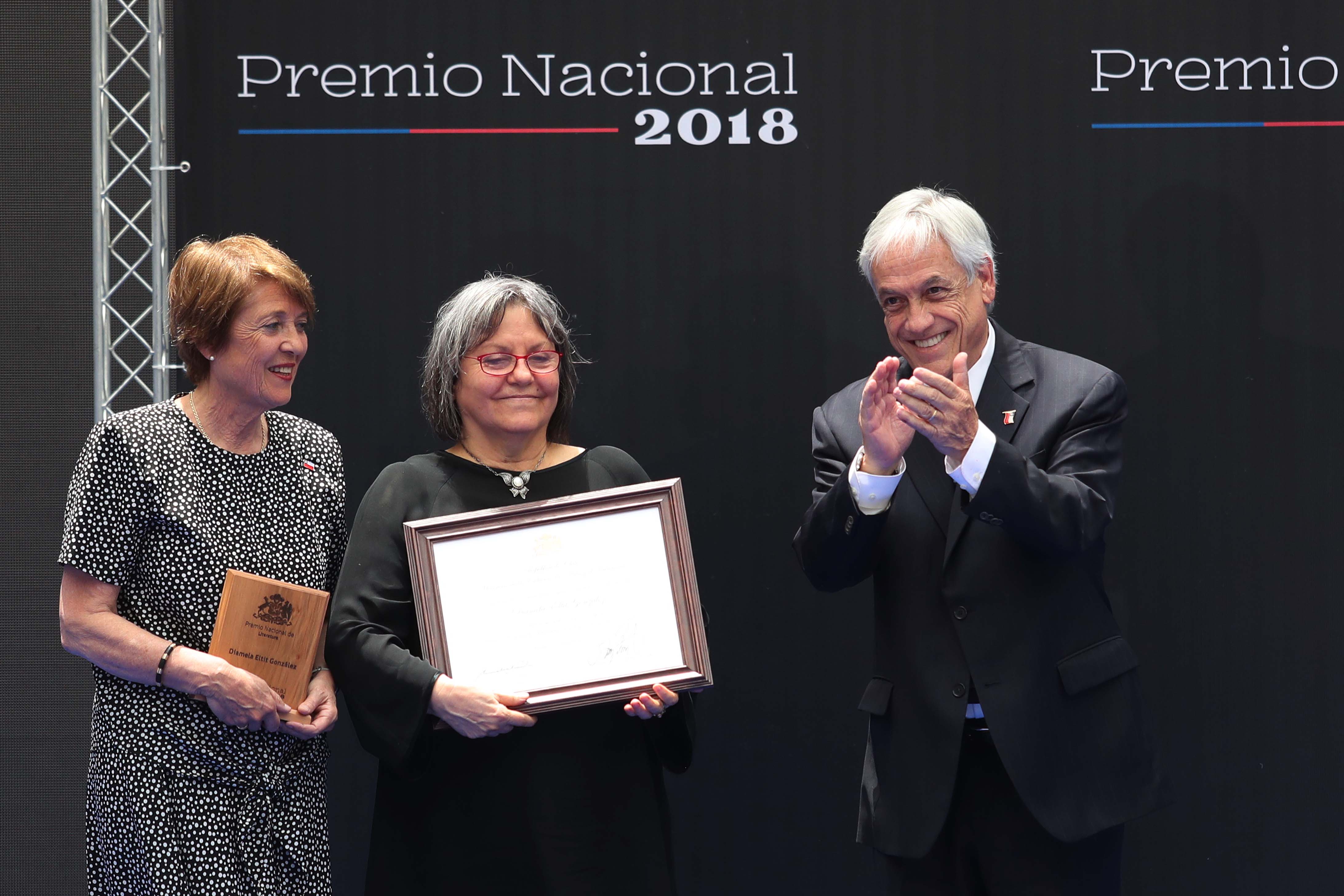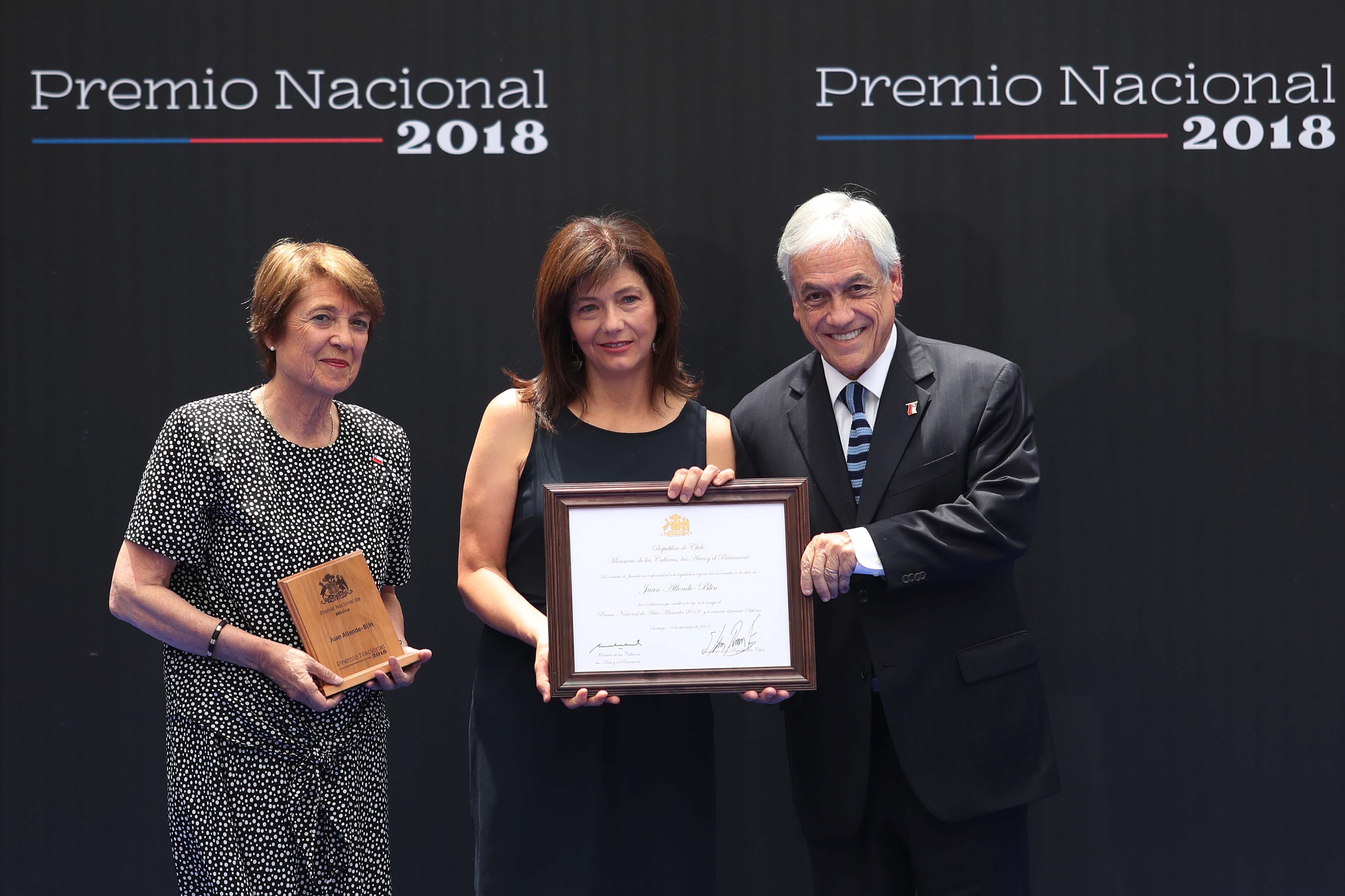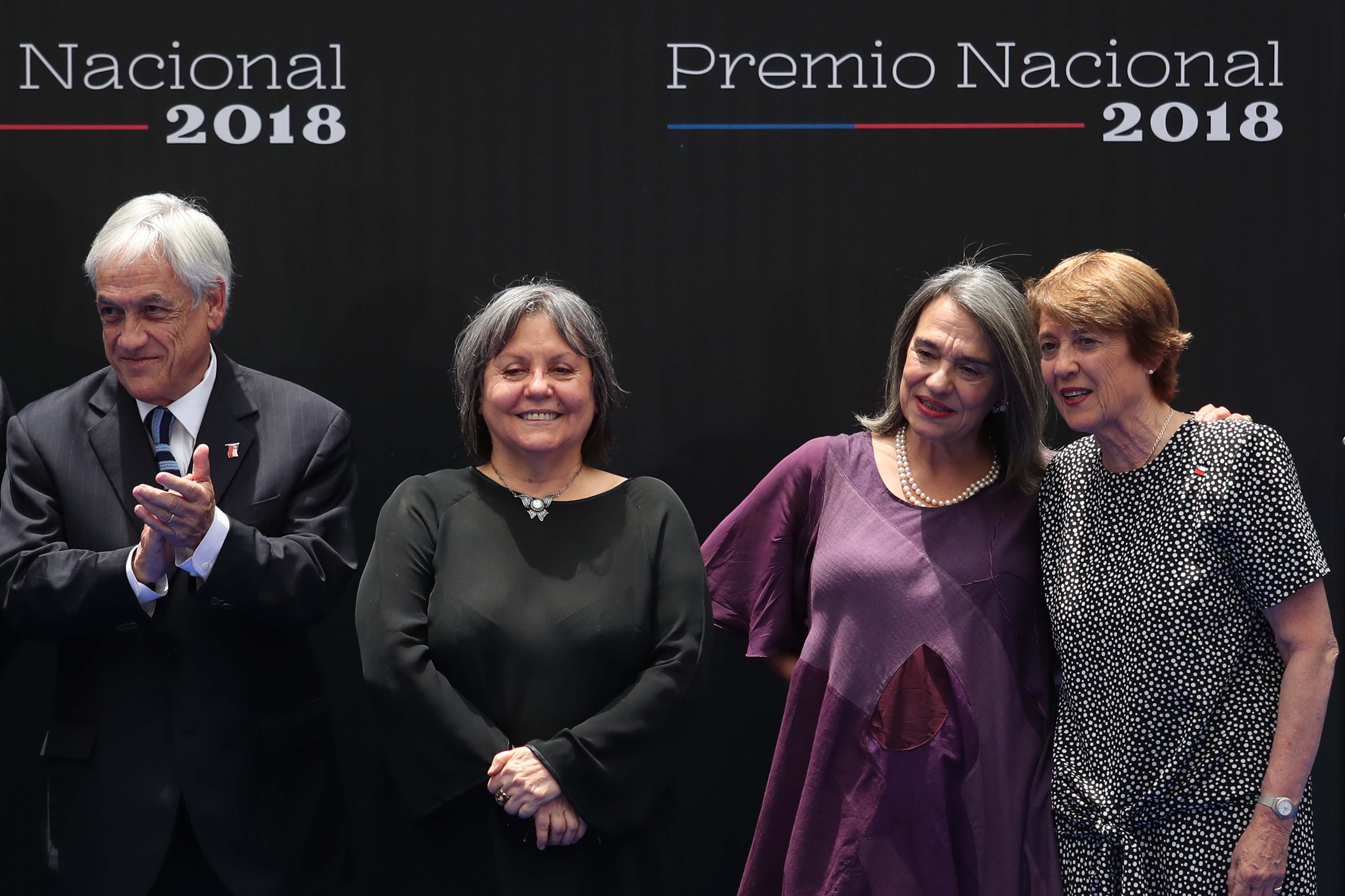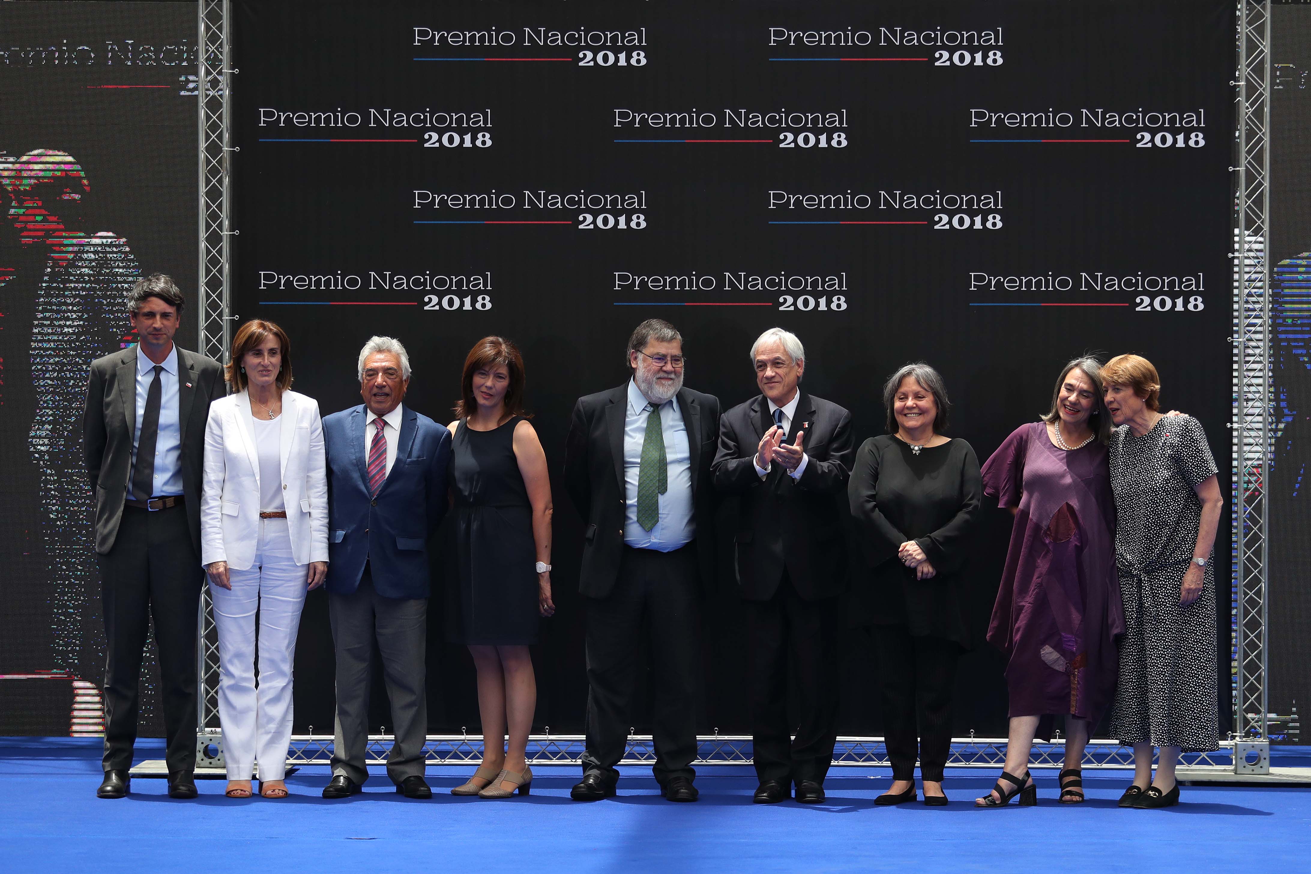 Sus nombres habían sido anunciados durante el año, pero este mediodía se realizó en el Patio de Los Cañones de La Moneda la ceremonia oficial de entrega de los Premios Nacionales 2018, encabezados por el Presidente Sebastián Piñera, quien acompañado de las ministras de las Culturas, las Artes y el Patrimonio, Consuelo Valdés, y de Educación, Marcela Cubillos, reconoció a Diamela Eltit en Literatura, Juan Allende-Blin en Artes Musicales -cuyo premio fue recibido por su sobrina Paulina Humeres ya que no pudo viajar desde Alemania donde reside-, Fabián Jaksic en Ciencias Naturales, Romilio Espejo en Ciencias Aplicadas y Tecnologías, y Sol Serrano en Historia.
