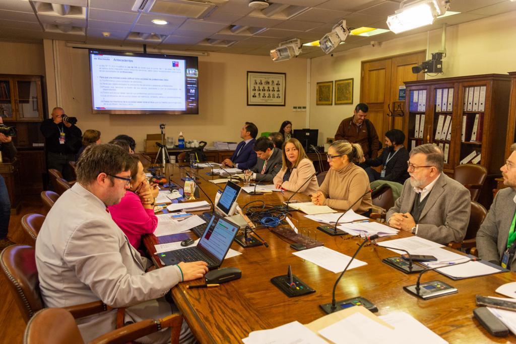 El ministro de las Culturas, Jaime de Aguirre, y las subsecretarias de Hacienda, Heidi Berner, y Cultura, Andrea Gutiérrez Vásquez, presentaron la iniciativa en las comisiones de Cultura y Hacienda de la Cámara de Diputados.