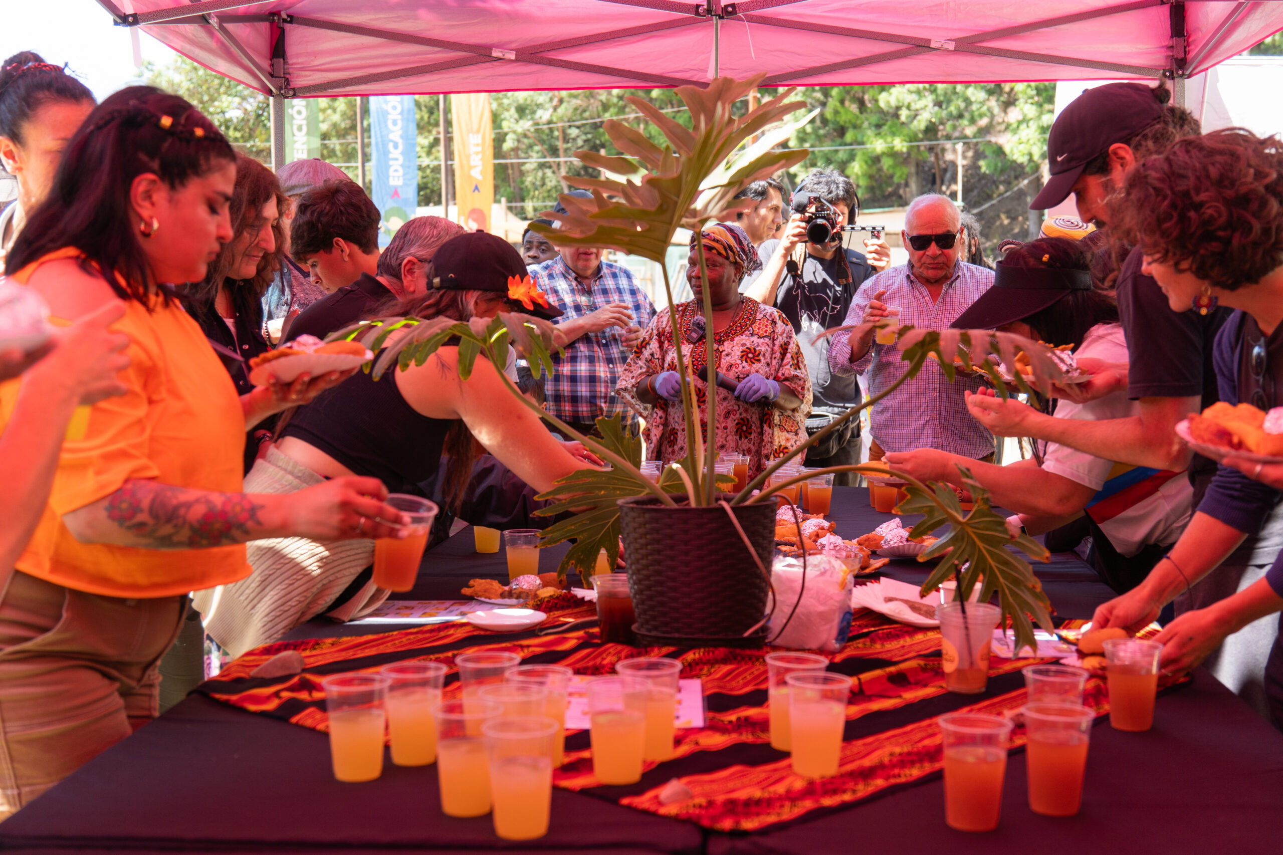 La jornada comenzó con una muestra gastronómica a cargo de Daniela Cari (Perú), Soad Hammad (Palestina) y Heidy Gómez (Honduras), quienes presentaron preparaciones culinarias propias de sus comunidades.
