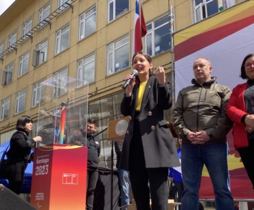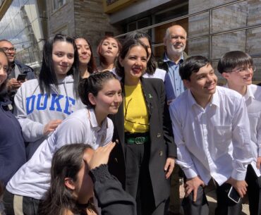 La secretaria de Estado se dio el tiempo para saludar personalmente a las y los estudiantes de los colegios, a quienes agradeció sumarse a la ceremonia. “Ustedes también son parte de este hito tan importante para nuestro país a través de sus expresiones artísticas y de sus talentos”, pronunció.