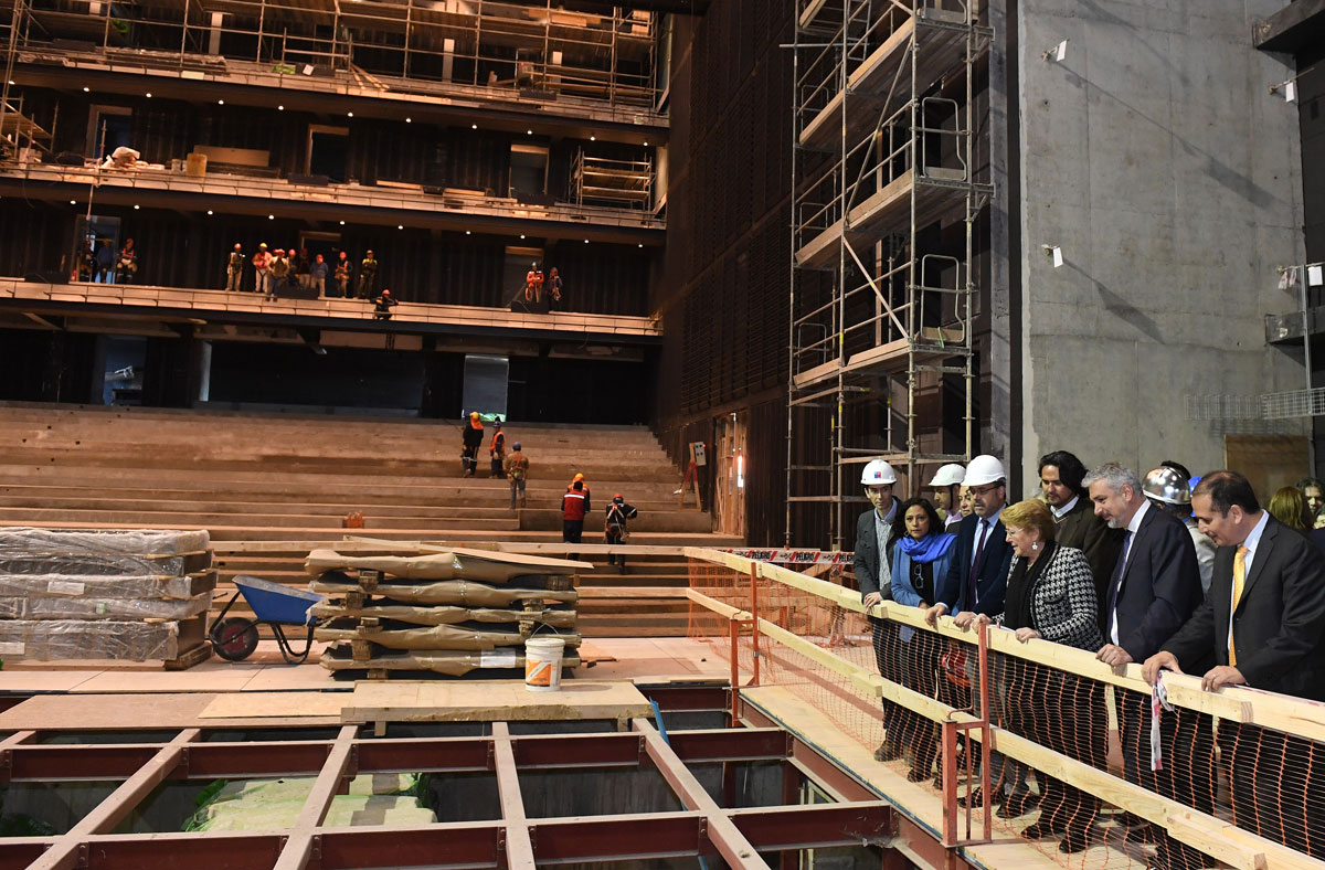 Actualmente se trabaja en las terminaciones de espacios públicos, operativos y salas, con un avance aproximando de 80 %; el montaje de membrana en la cubierta y fachada oriente-norte; montaje escenotécnico; y faenas de obras exteriores, que incluyen radieres, baldosas, asfaltado de las vías de circulación vehicular, veredas, entre otros. En total, las obras presentan un 75 % de avance.