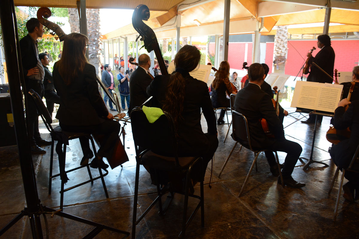 La visita de la OCCH permitió también que niños, niñas y adolecentes conocieran de cerca los instrumentos de la orquesta. La tarea estuvo a cargo del concertino del ensamble, Hernán Muñoz, y del primer oboísta, Sergio Marín, quienes se encargaron de la presentación de las maderas, cuerdas y vientos.