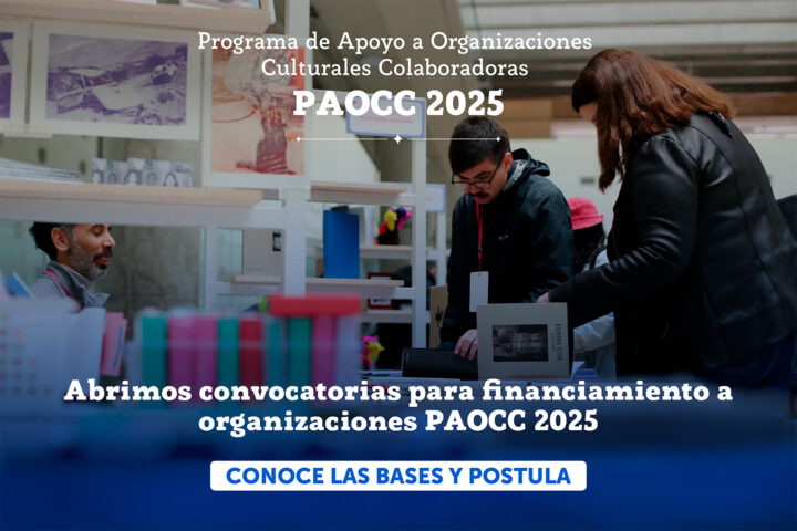 El Programa de Apoyo a Organizaciones Culturales Colaboradoras (PAOCC) se orienta a entregar financiamiento y asistencia técnica a organizaciones culturales que generan programación, implementan acciones de participación y fomentan la creación y experimentación artística, para que puedan consolidar sus equipos de trabajo y mantener la continuidad de su quehacer.