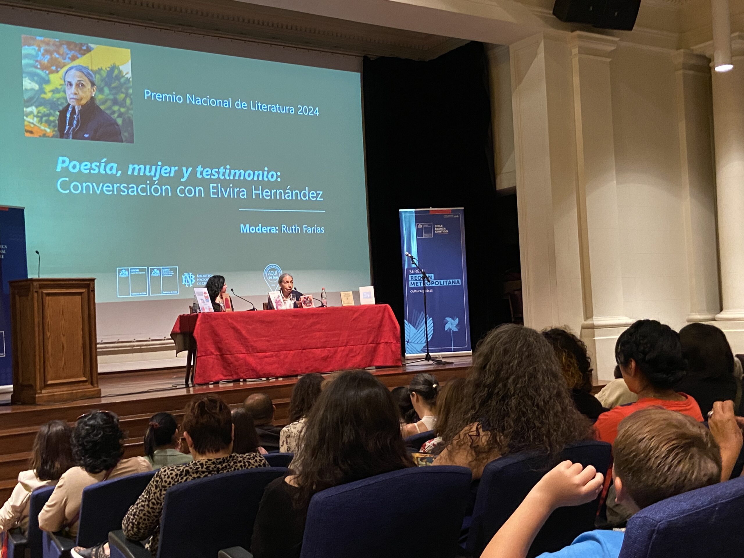 La Secretaría Regional Ministerial de las Culturas, las Artes y el Patrimonio de la Región Metropolitana, a través del Plan de Lectura RM, en colaboración con Bibliometro y la Biblioteca Nacional, realizó el conversatorio con la destacada poeta Elvira Hernández, un día después de recibir el Premio Nacional de Literatura, fue la oportunidad de acercarnos a sus procesos escriturales, su identidad literaria y las luchas sociales de nuestro tiempo.