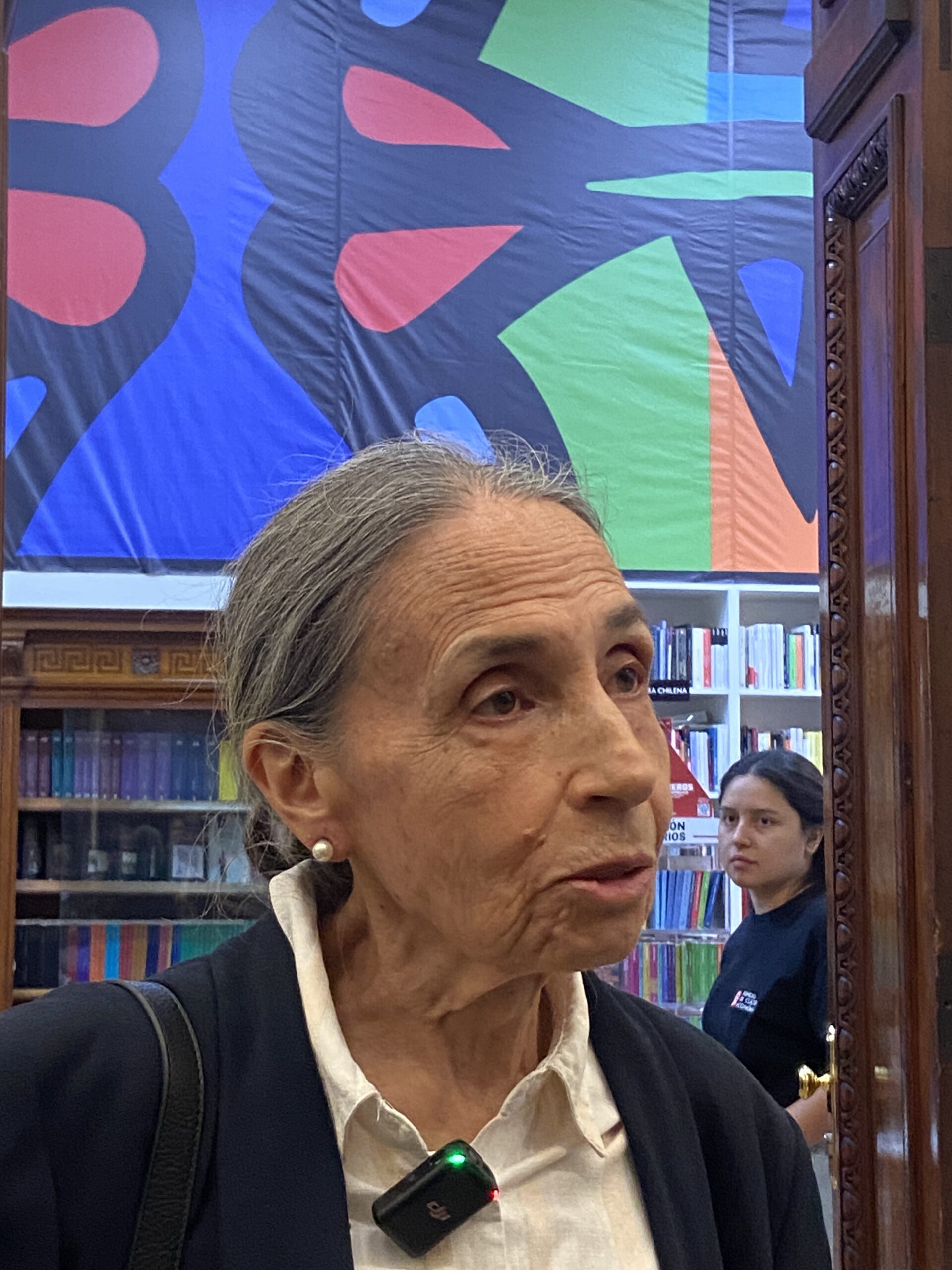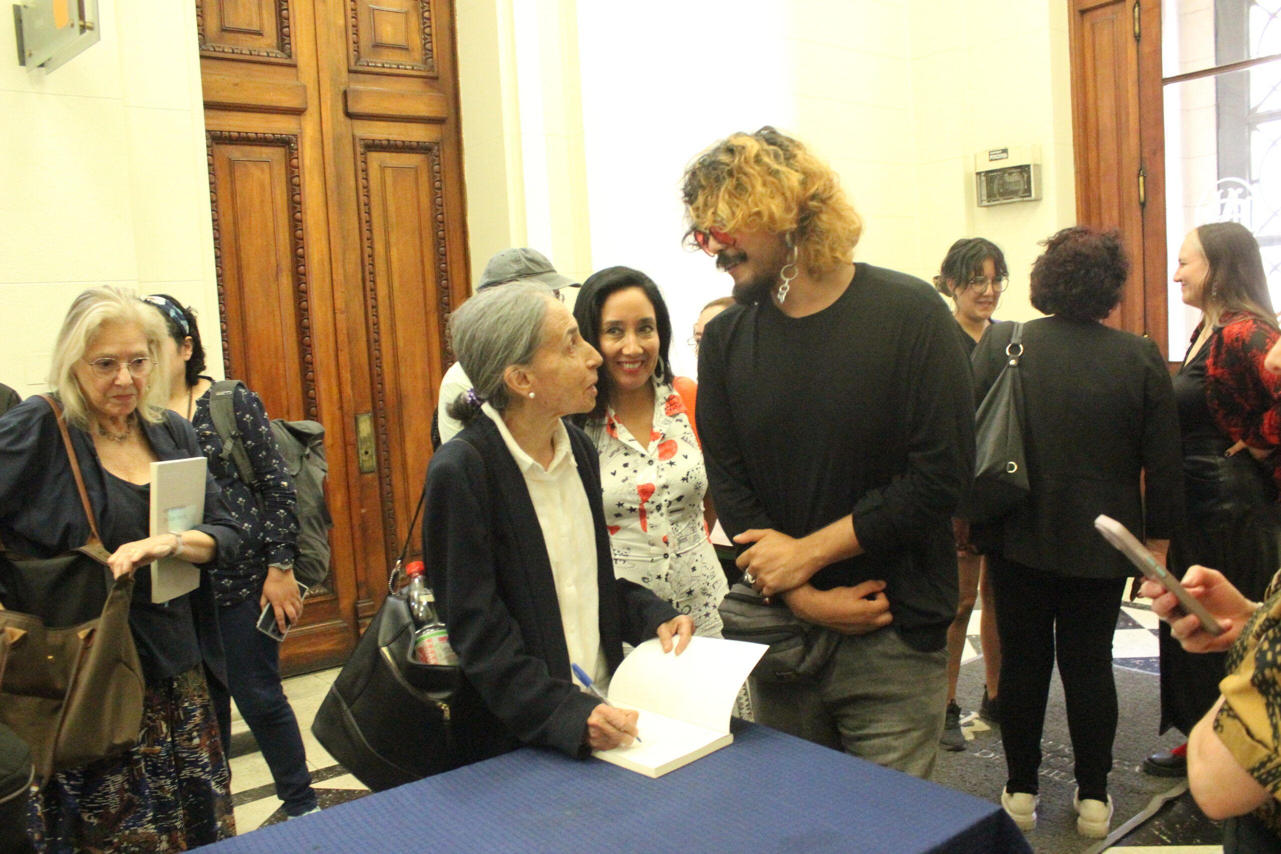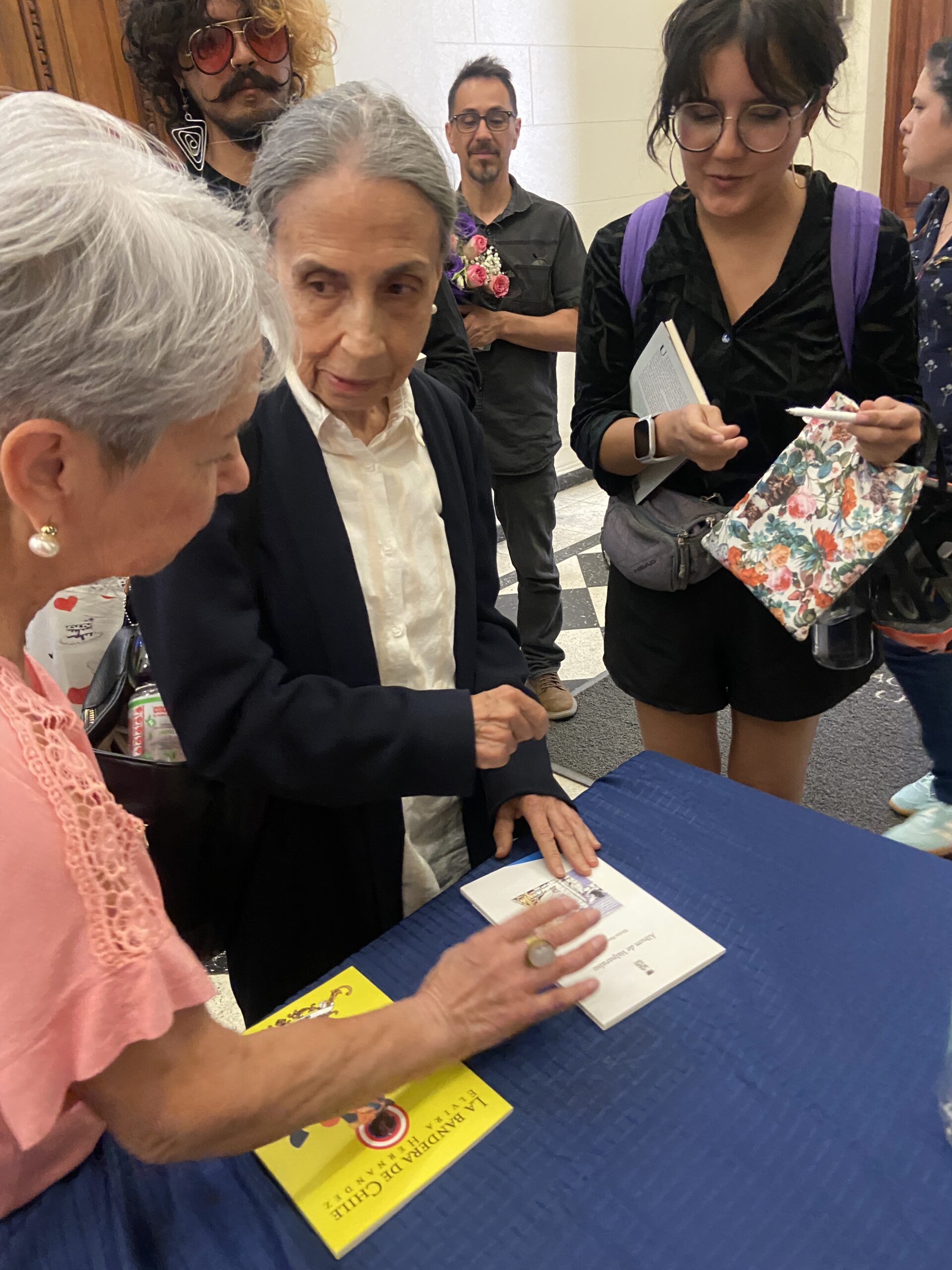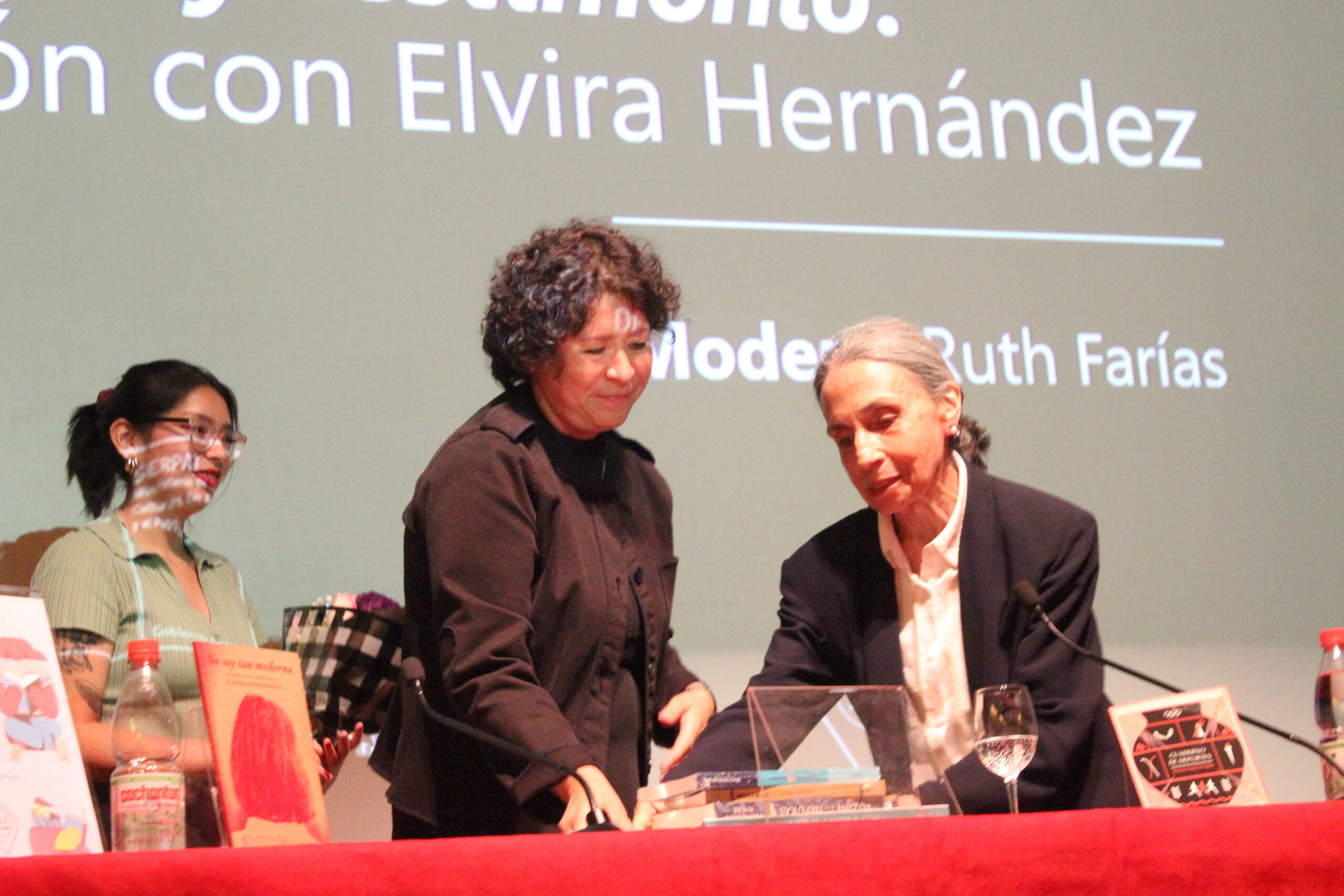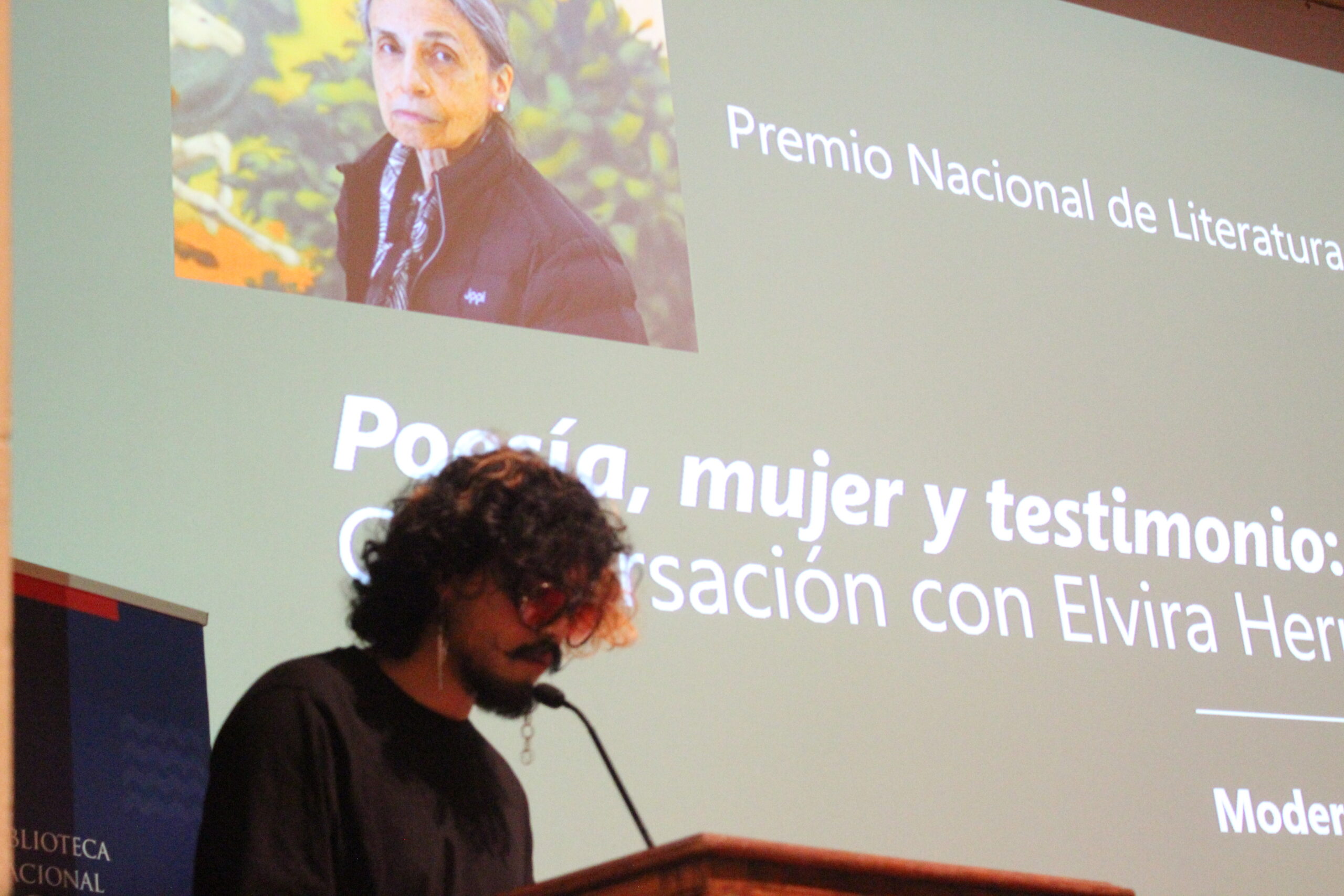 “Poesía, mujer y testimonio: conversación con Elvira Hernández” se realizó en una Sala América de la Biblioteca Nacional repleta, que guiada por la conversación de Ruth Farías, generó un espacio de reflexión, testimonio y poesía al repasar junto a la autora sus influencias, experiencias, el rol de la mujer y su escritura en las distintas etapas de su vida, fuertemente influida por el contexto social y político del país. Un ambiente íntimo de intercambio entre escritora, lectores y lectoras y la ciudadanía.
