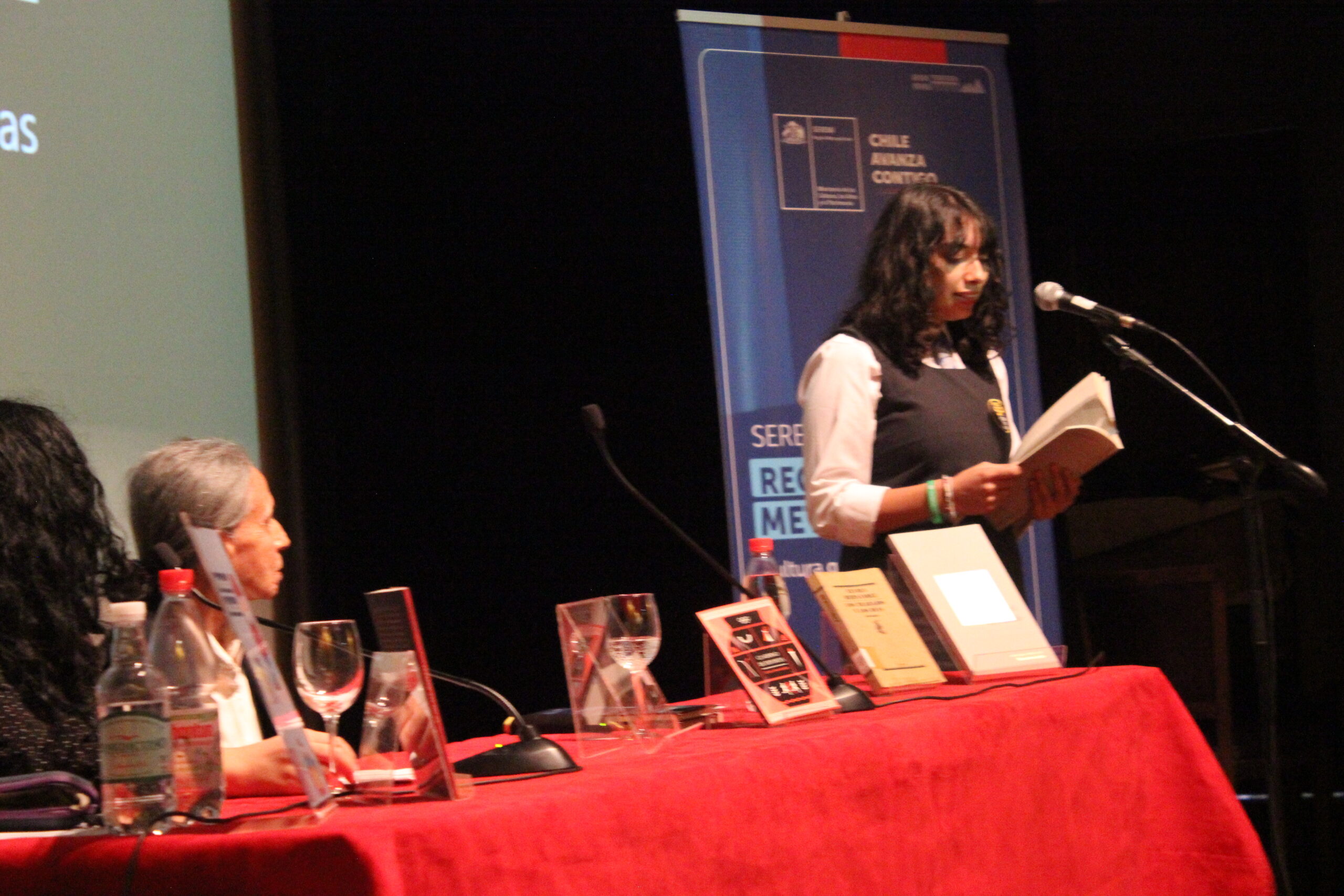 Realizado el 20 de marzo con un público de todas las edades, con especial participación de estudiantes de los colegios Arturo Toro Amor, Liceo 7 y universitarios, los que al final del encuentro se sumaron a la lectura de varios poemas d ela autora, generando un espacio estelar para las palabras que llevaron a los asistentes a los distintos mundo recreados por la poeta de 74 años.