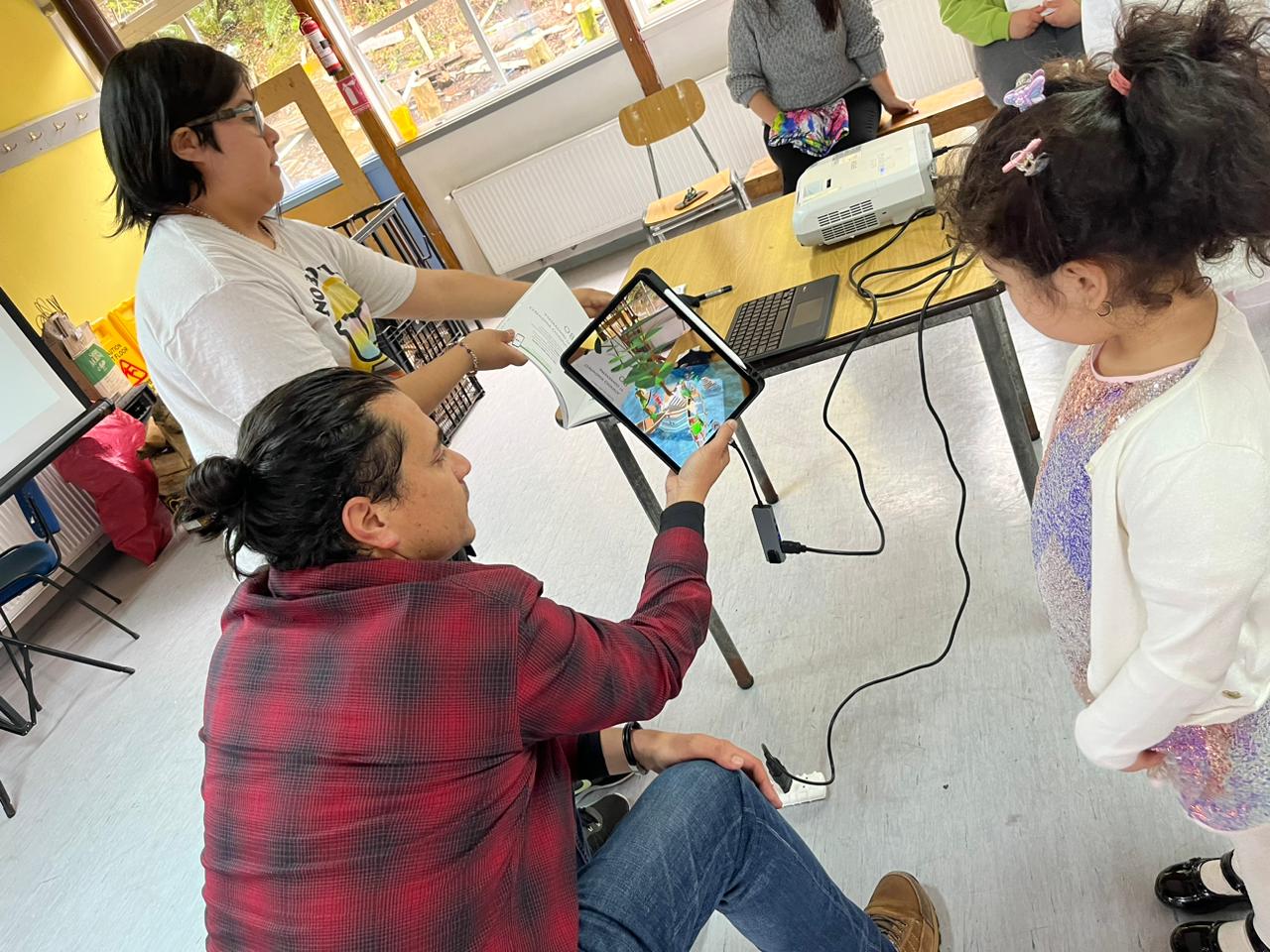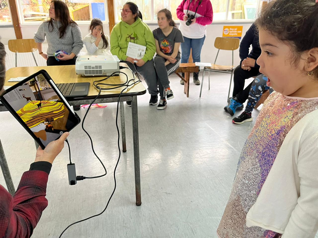 En la escuela Miguel Montecinos de la localidad de la provincia de Última Esperanza y situada al sur del Golfo de Penas, Urtubia enseñó detalles de su texto. Estudiantes, apoderados y profesores vivieron la experiencia de la realidad aumentada. Se asombraron con la interactiva publicación que representa aspectos como la cosmovisión, ceremonias, viviendas y la navegación de los pueblos Aonikenk, Selk’nam, Yagán y Kawésqar.