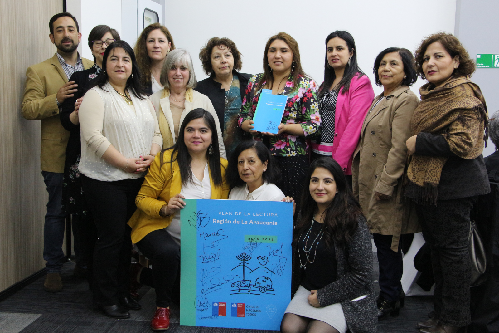 Las seremis de las Culturas, las Artes y el Patrimonio Mariela Silva y de Educación Alicia Bahamondes, la coordinadora regional de Patrimonio Noelia Durán, las directoras de Senama Karin Mella, del CNTV Carolina Parra, de Fundación Integra Marioli Zúñiga y de Senadis Daniela Guerrero, el director (s) de Junji Jorge Díaz, la presidenta Mesa Ciudadana de la Lectura Bernardita Riffo y otros representantes del comité ejecutivo de la lectura encabezaron la presentación del Plan Regional de la Lectura 2018-2023, actividad realizada en el auditorio de la Intendencia de La Araucanía.