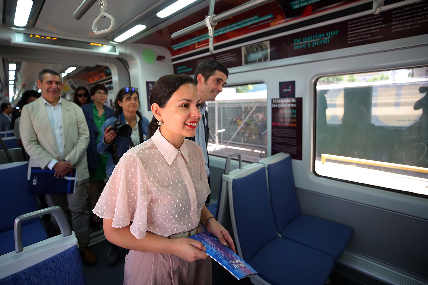 “El tren de Gabriela Mistral se suma a las distintas actividades de celebración de esta figura fundamental, primera mujer en Latinoamérica en recibir la distinción del Premio Nobel de Literatura”, dijo la ministra de las Culturas, las Artes y el Patrimonio, Carolina Arredondo, quien agregó que “poder acercar a Gabriela Mistral de una manera diferente, acompañando a las personas en su viaje, invitando también a aquellas generaciones más jóvenes que todavía no han tenido la oportunidad de vincularse con ella de una manera distinta”, dijo la Secretaria de Estado.