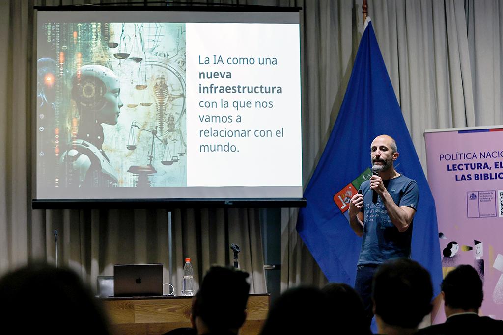 En el marco del mes del libro y la lectura, la Universidad de Chile fue sede de una charla magistral del consultor internacional Daniel Benchimol sobre el impacto de la inteligencia artificial generativa en la industria editorial. La actividad, organizada por la Vicerrectoría de Extensión y Comunicaciones (Vexcom) junto al Ministerio de las Culturas, abordó los desafíos que esta tecnología plantea en torno a los derechos de autor, la creación y el futuro del trabajo en el sector.