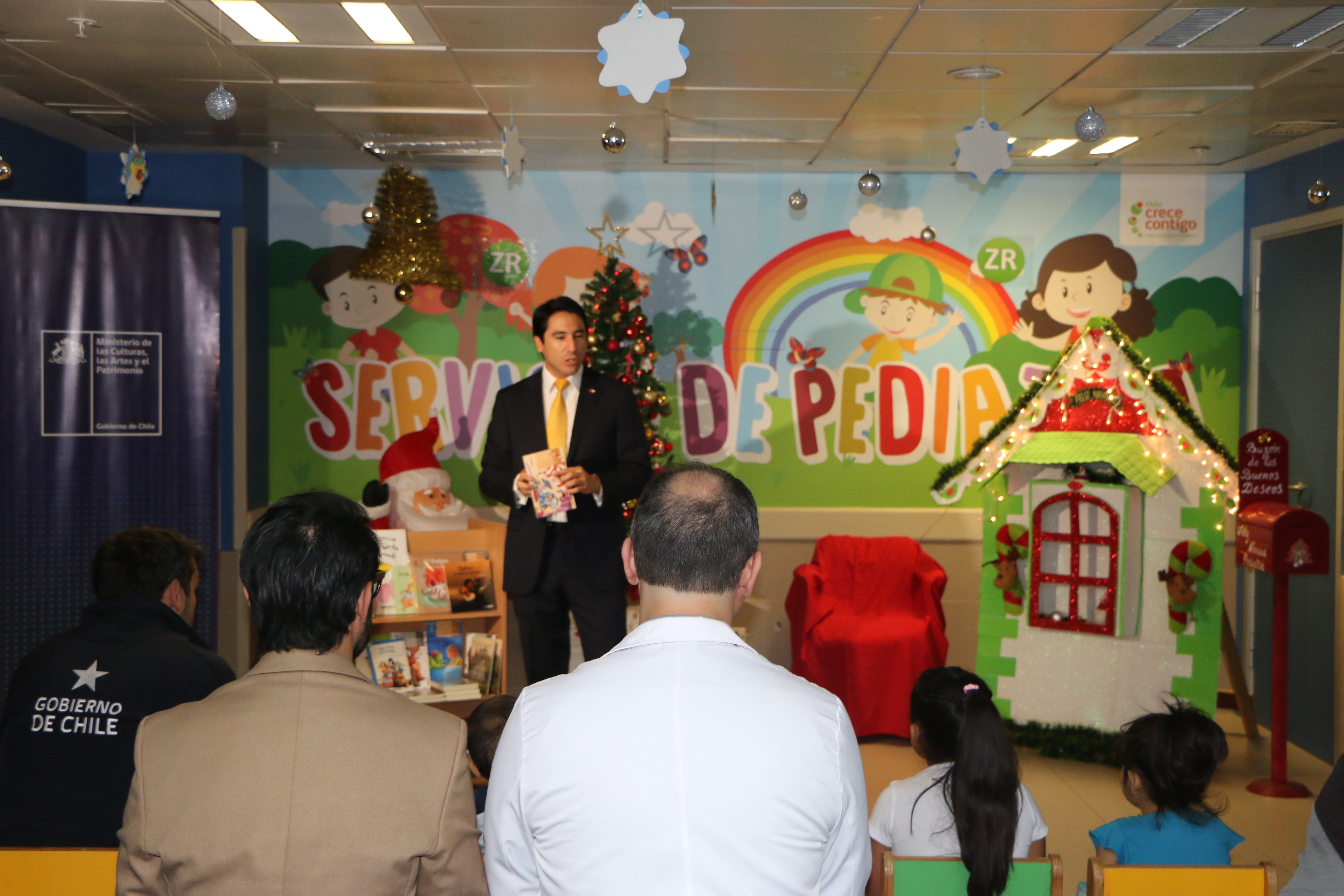 Con este objetivo, el Intendente de Atacama, Patricio Urquieta, junto a la Seremi de las Culturas, María Cecilia Simunovic Ramírez, el Seremi (s) de Salud, Bastián Hermosilla, y el Director del Servicio de Salud, Claudio Baeza, visitaron las dependencias del hospital regional San José del Carmen de Copiapó, lugar en el que compartieron con los niños y niñas del área de Pediatría, implementaron un punto de lectura a través de un módulo con 50 libros de literatura infantil, y disfrutaron de las historias del Cuentacuentos de la Compañía LaCronopio.