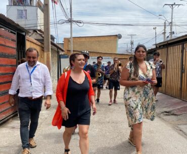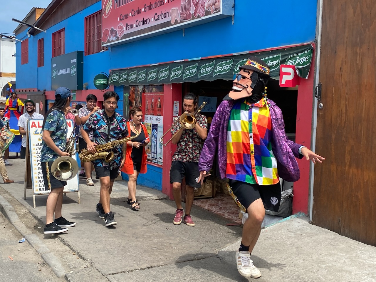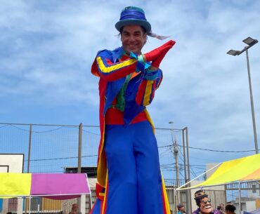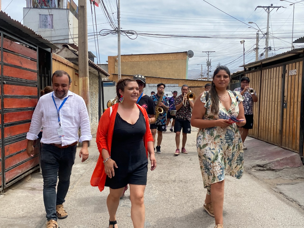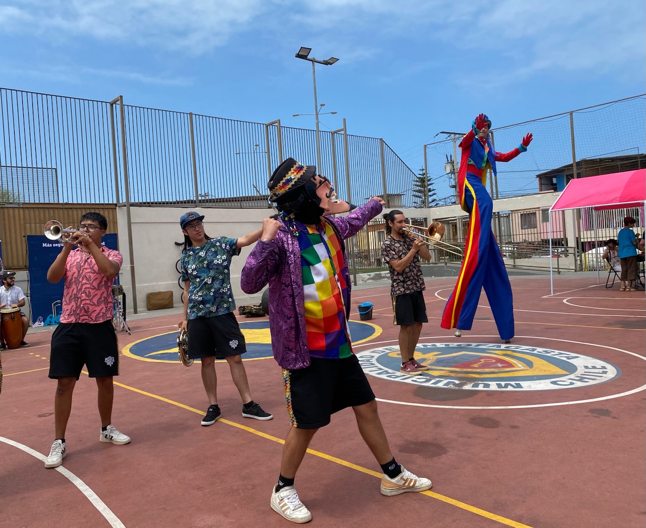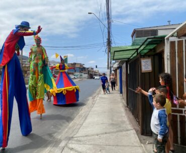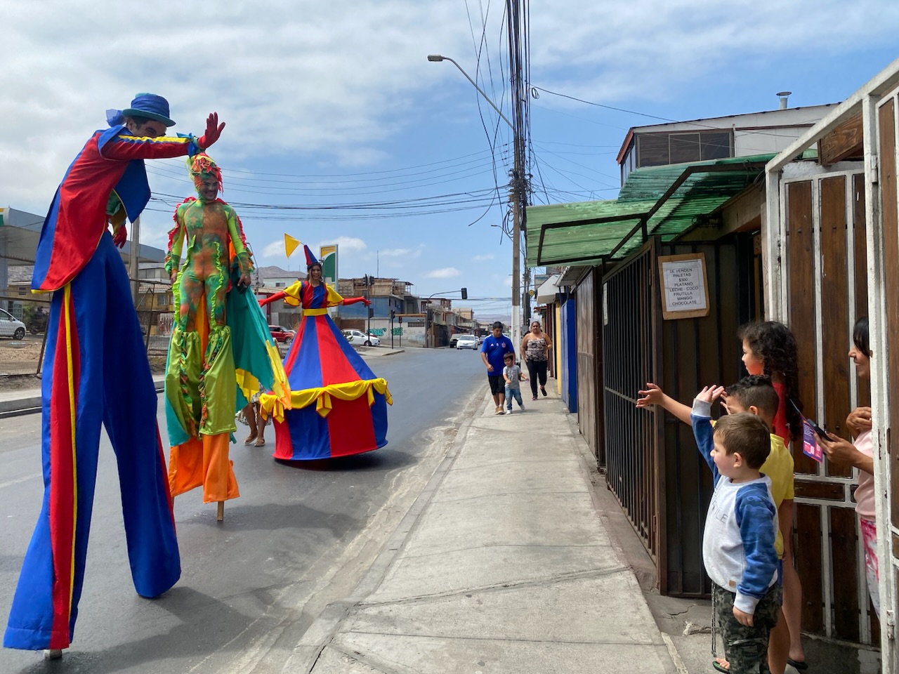Fue con un colorido y festivo pasacalle, a cargo de las agrupaciones artísticas Mística Show y Rua Circo, que las autoridades regionales presididas por el seremi de las Culturas, las Artes y el Patrimonio, Claudio Lagos, seremi (s) de Gobierno, Paulina Larrondo y la coordinadora regional de la Subsecretaría de Prevención del Delito, María Gloria Lazcano, invitaron a la comunidad de la población Juan Pablo Segundo de la comuna de Antofagasta, a ser parte del lanzamiento regional del programa “Patios Culturales”.